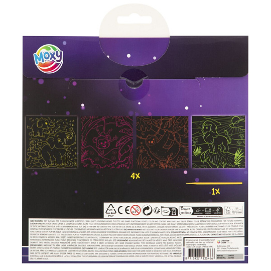 Kreativní set obsahuje 4 kusy vyškrabávacích obrázků, které září ve tmě a vyškrabávací pero velikost obrázku je 19,5x19,5 cm