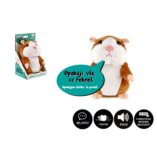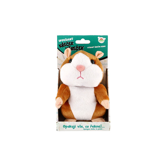 Rozkošný křeček Mireček nadchne celou rodinu a zároveň si s ním užijete mnoho zábavy! Křeček Mireček totiž umí mluvit - stačí na Mirečka promluvit a on legračně opakuje vše co uslyší svým pozměněným hlasem a bude u toho také roztomile přikyvovat hlavou. Křečka Mirečka si tak určitě zamilujete a stane se důležitou částí Vaší rodiny! Hračka je na baterie 3x AAA, které jsou součástí balení. Velikost hračky: 18 cm Rozměr krabičky: 12 x 20 x 10 cm Vhodné pro děti od 3 let
