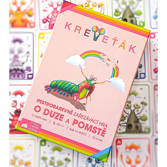 Chystáte se na party ke kamarádovi? Vezměte Kreveťáka! Jedete k babičce na návštěvu? Vezměte Kreveťáka! Chcete okořenit vaši rodinnou oslavu? Vezměte Kreveťáka! Jednoduchá a snadno naučitelná pravidla a svižná hra plná vtipných zařezávacích okamžiků! Jednoduše hra, kterou musíte mít vždy po ruce! A to jsme ani nezmínili, že se jedná o karetní počin z produkce Výbušných koťátek.