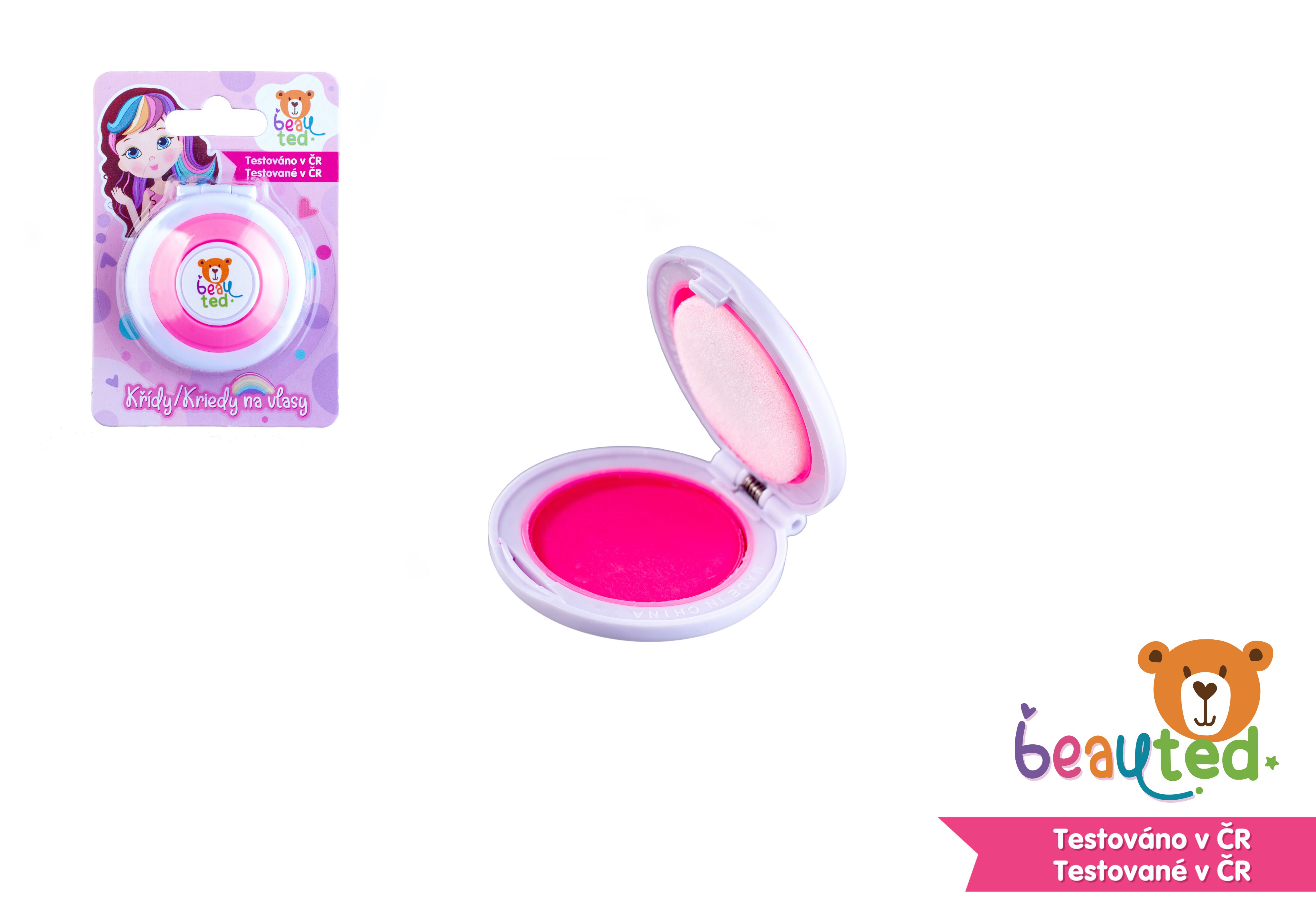 Speciální růžová křída na vlasy, která se snadno umyje šamponem. Vítejte v hravém a bezpečném světě kosmetiky značky beauted. Malé holčičky se začínají seznamovat se světem krásy již od raného dětství a brzy je zajímá vše, co jejich maminky používají. Značka beauted je k objevování kosmetiky jako stvořená. Produkty této řady jsou navrženy tak, aby byly hlavně bezpečné, ale také hravé a inspirativní. Podpoří kreativitu a představivost, umožní rozvíjet a formovat smysl pro estetiku a krásu. Značka beauted je laboratorně testovaná v České republice. Kontrola těžkých kovů je prověřena státním zdravotní ústavem, plastové obaly jsou testovaných v ITC Zlín. Podklady pro evropský portál notifikace přípravků /CPNP/ jsou rovněž zpracovány laboratoří v ČR. Certifikace v České republice zaručuje kvalitu a bezpečnost, aby rodiče mohli mít jistotu, že produkty značky beauted jsou kvalitní, bezpečné a šetrné k dětské pokožce. Rozměr křídy: 5 cm Vhodné od 6 let