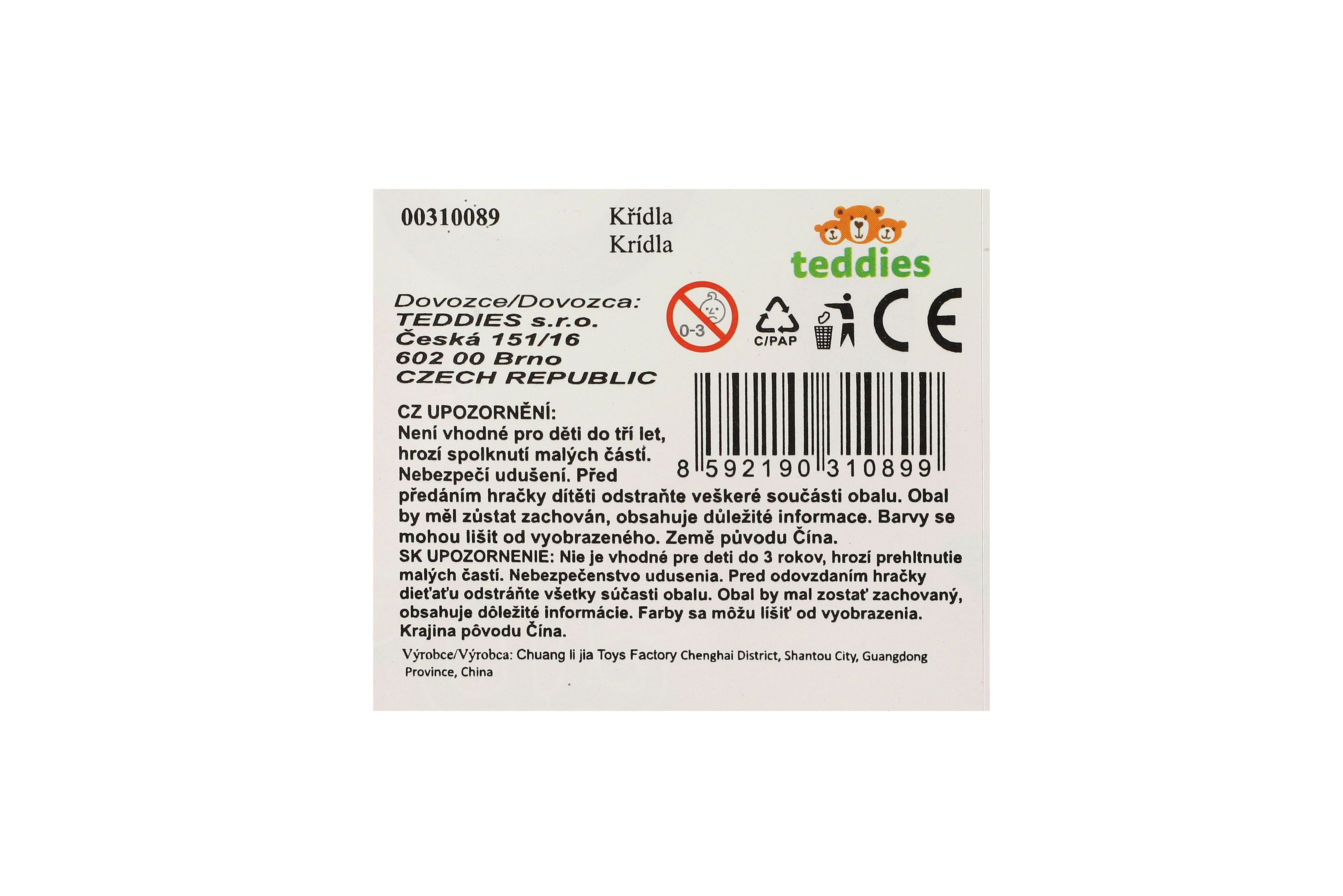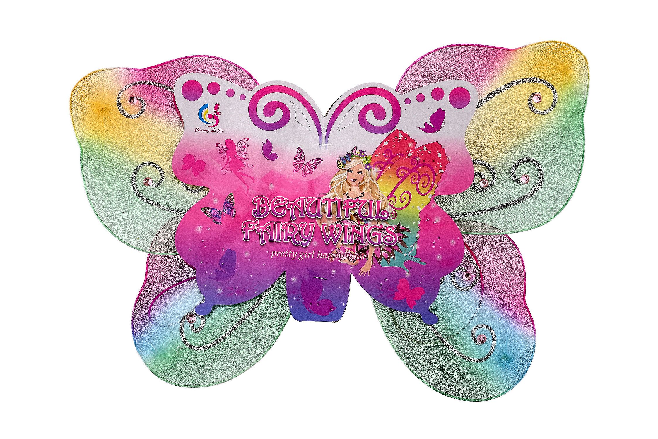 Uchycení gumičkou za ramena. Doplněk kostýmu motýlek, nebo víla. Rozměry balení 44 x 32 x 1 cm. Vhodné pro děti od 3 let.