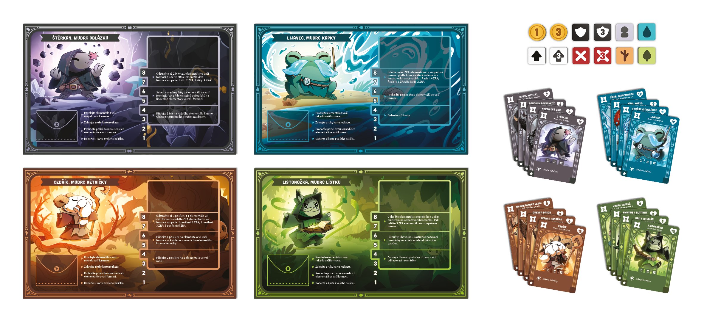Podmaňte si magii pralesa a utkejte se se soupeřícími mudrci ve hře od tvůrců Chlupatých zabijáků a Čarostínů, zaměřené na budování baličku karet. Povolávejte válečníky živlů z kmenů Větvičky, Lístku, Kapky a Oblázku a prokažte svou zručnost v boji. Během bitvy budete postupovat na vyšší úrovně a získávat přístup k výjimečným schopnostem a mocným šampionům živlů. Budete to vy, kdo zůstane poslední stát pevně na nohou coby vítěz, až se usadí prach z bitvy?