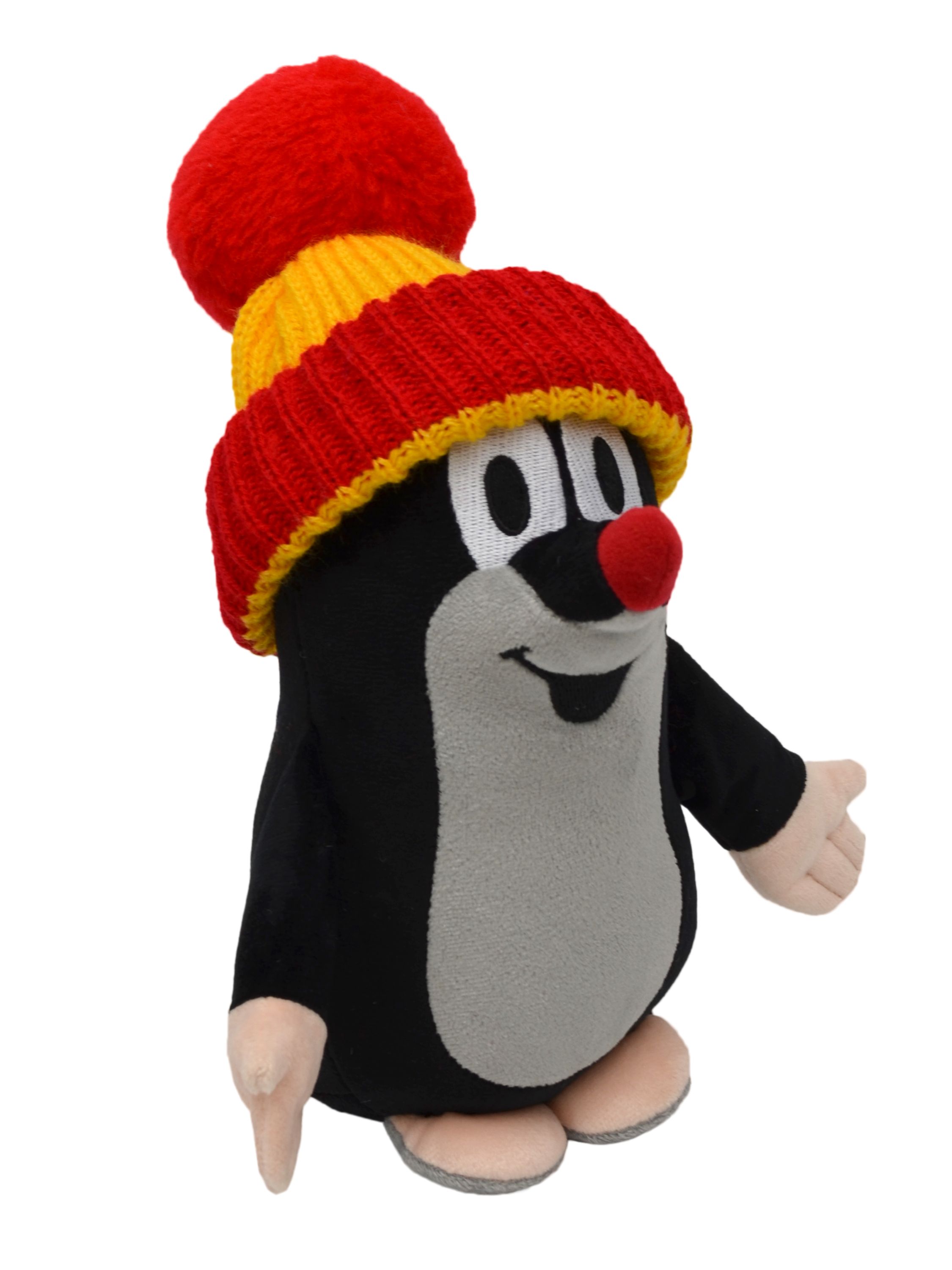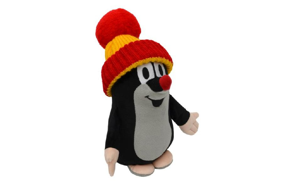 Moravská Ústředna Krtek s kulichem červeno-žlutým stojící 28cm v sáčku