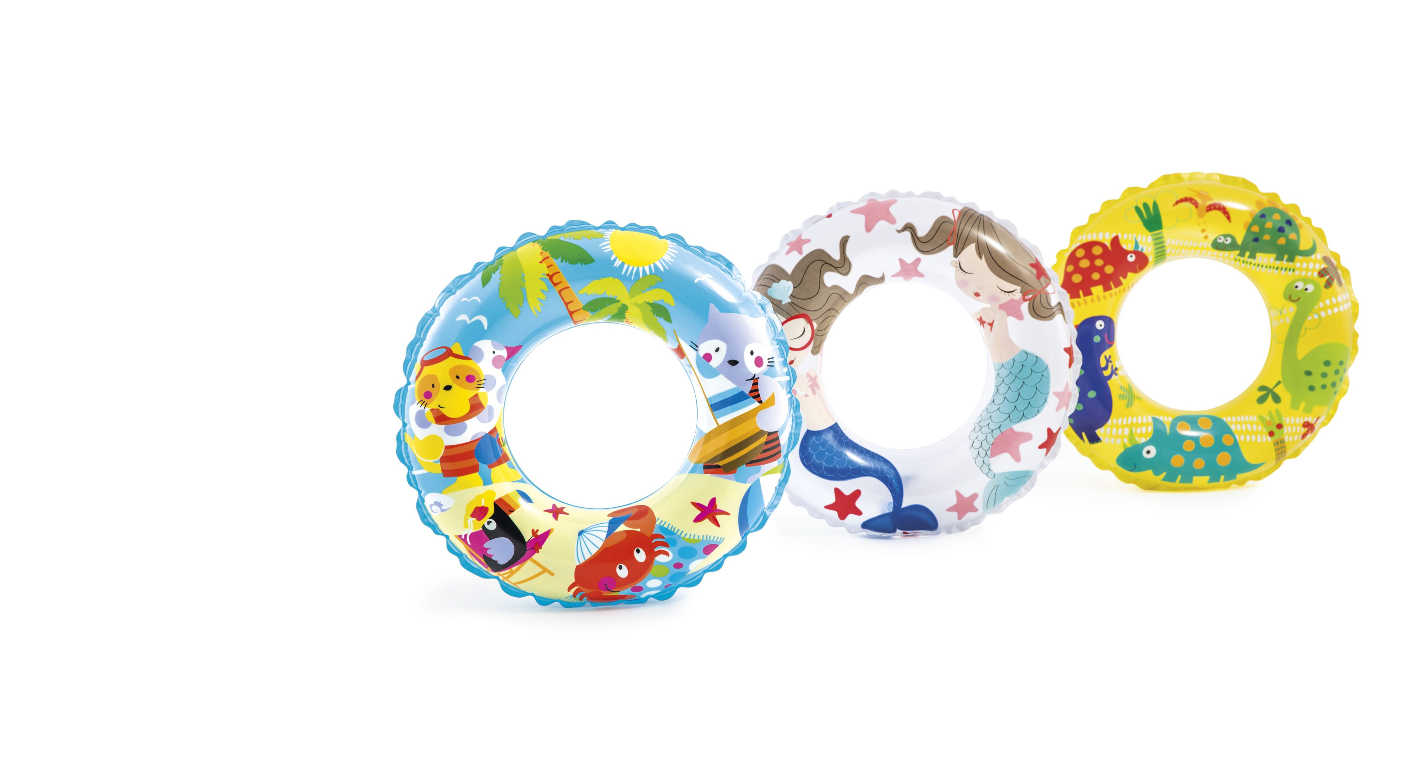 Nafukovací barevný kruh pro letní horké dny, který slouží jako perfektní pomůcka pro oporu v plavání. Průměr 61 cm. Vhodné pro děti od 6 do 10 let.