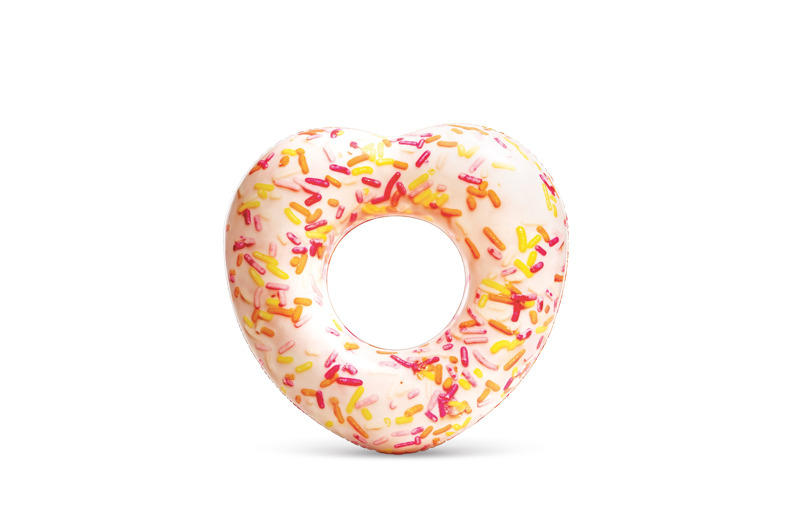 Nafukovací kruh donut ve tvaru srdce o velikosti 104 cm. Vyrobeno z kvalitního vinylu. Nafukovací kruh s realistickým potiskem koblihy Donutu. Kruh využijete v bazénu i na dovolené u moře. Krásný kousek, se kterým bude koupání jedna velká zábava. Rozměr krabičky: 19,5 x 18 x 4,5 cm Vhodné od 9 let
