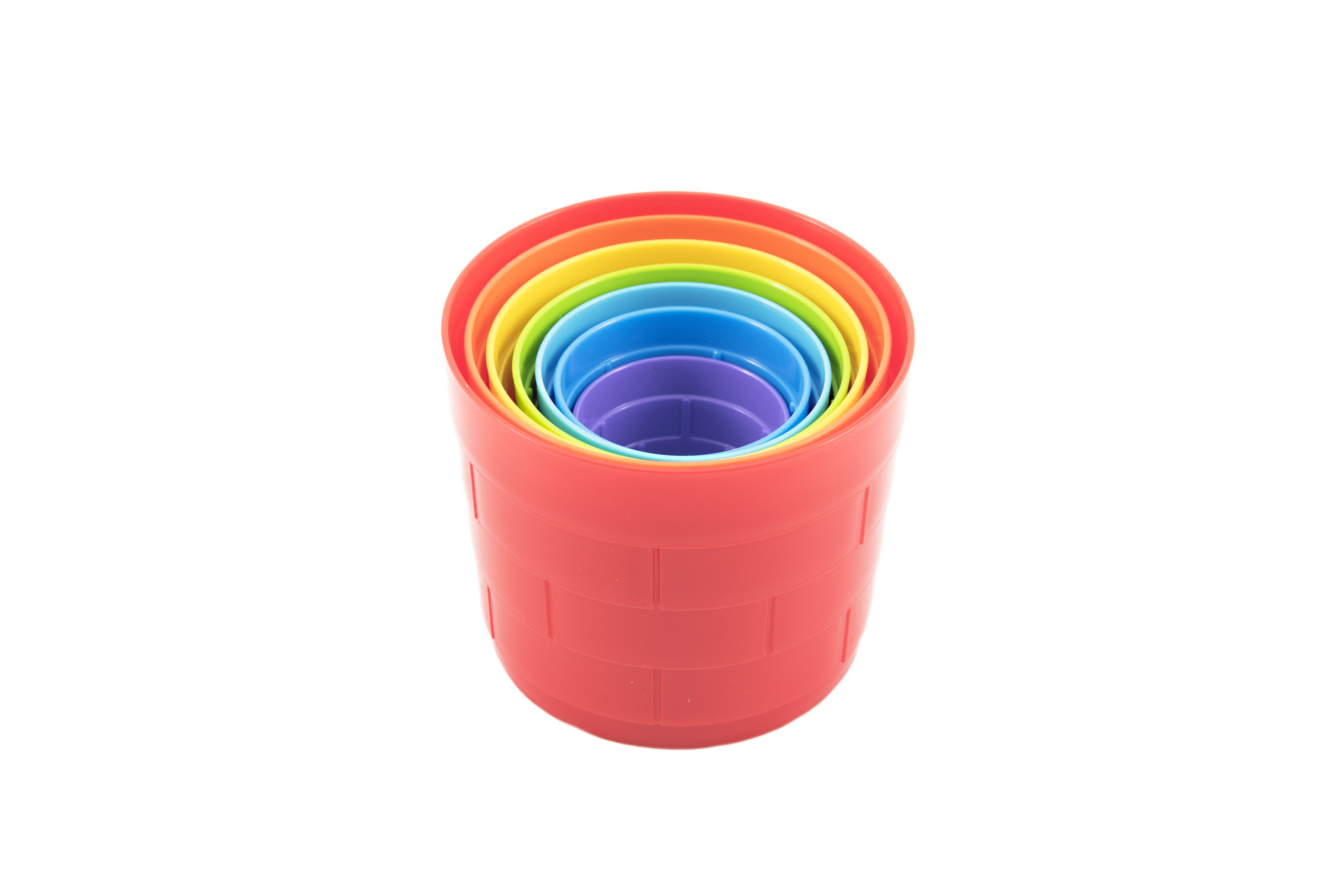 Teddies Kubus pyramida skládanka plast kulatá barevná 7ks v sáčku 12m+