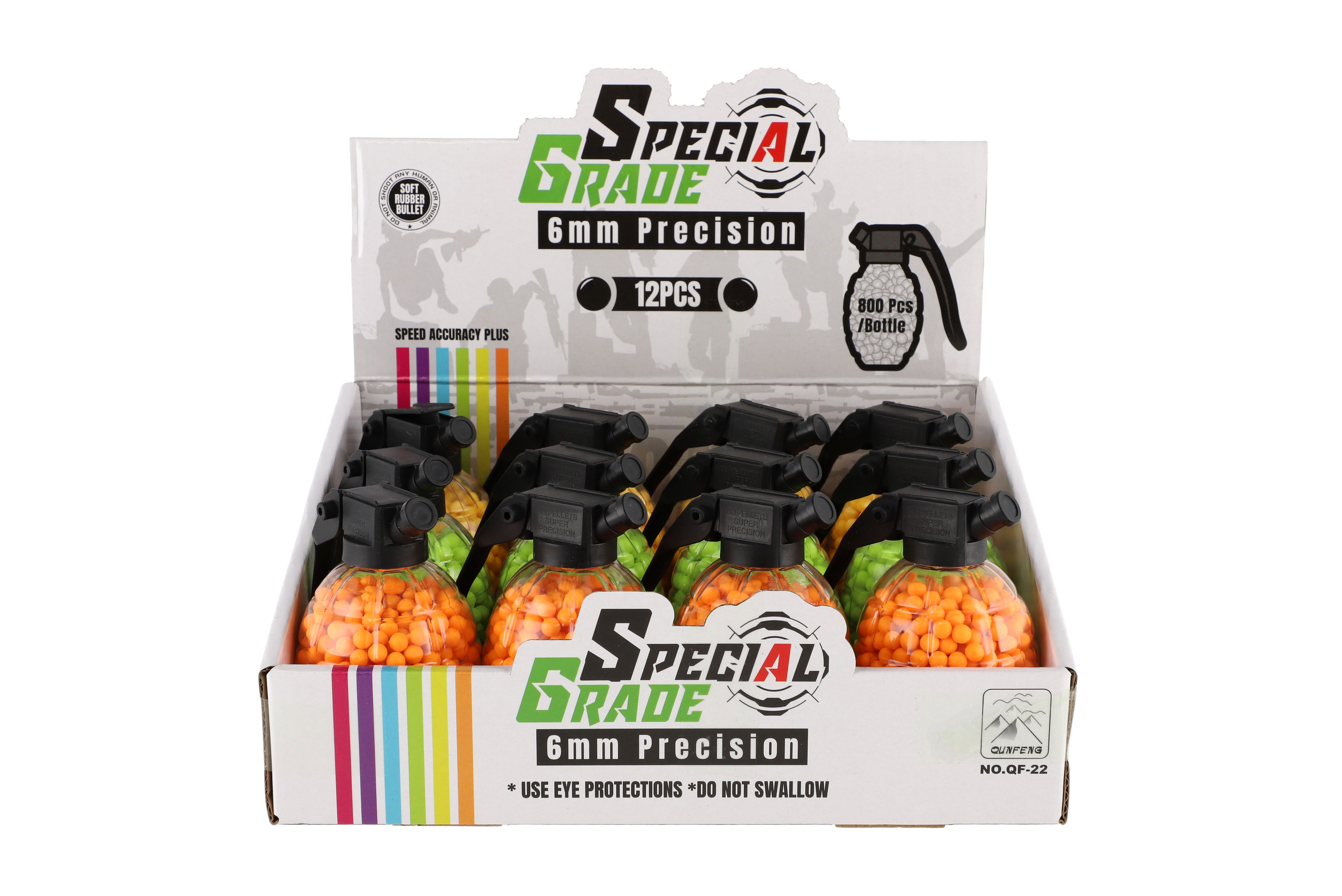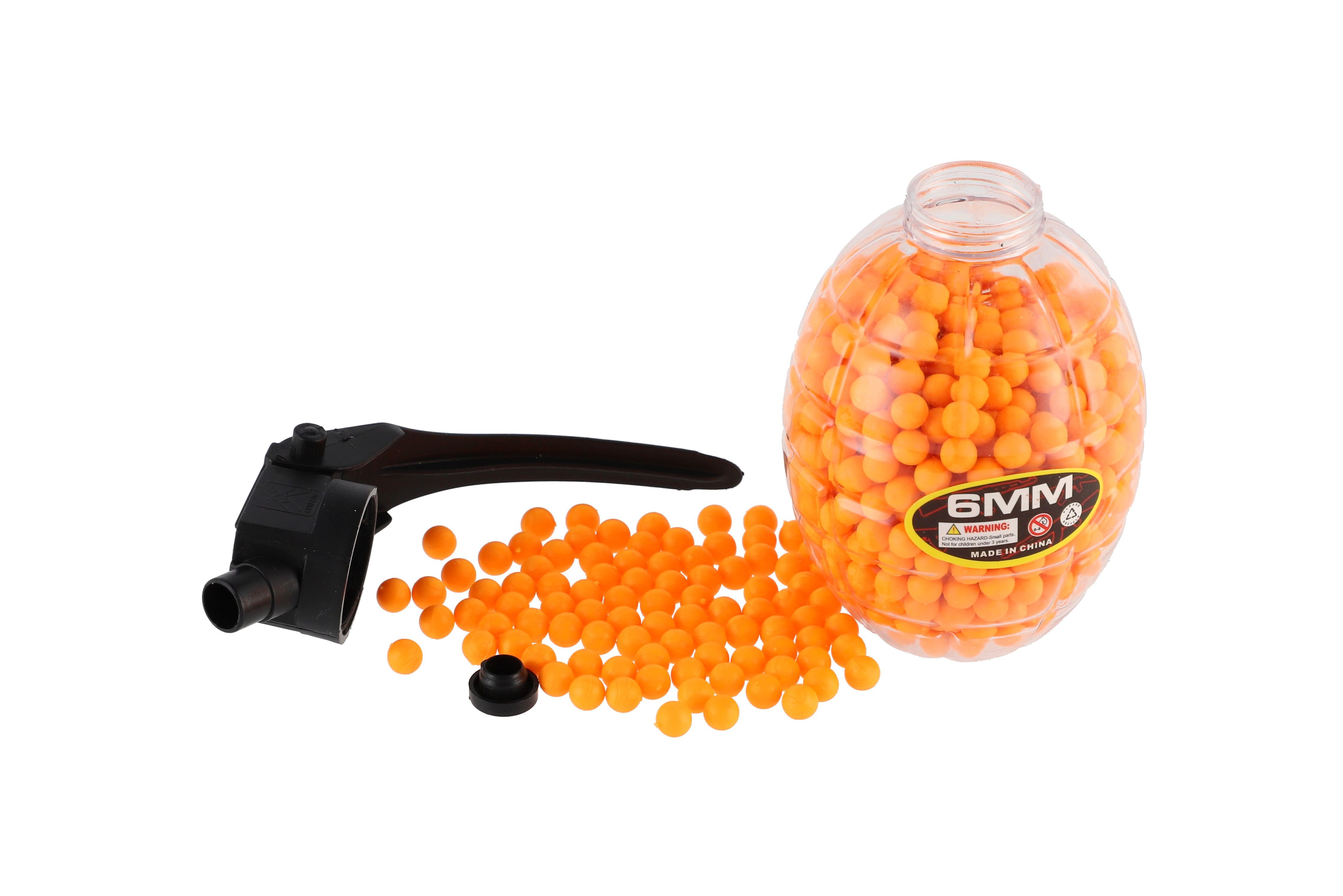 Set nábojů do pistole kuličkovky v dóze ve tvaru granátu. Balení obsahuje 800 kusů kuliček. Velikost dózy: 10 cm Vhodné od 3 let