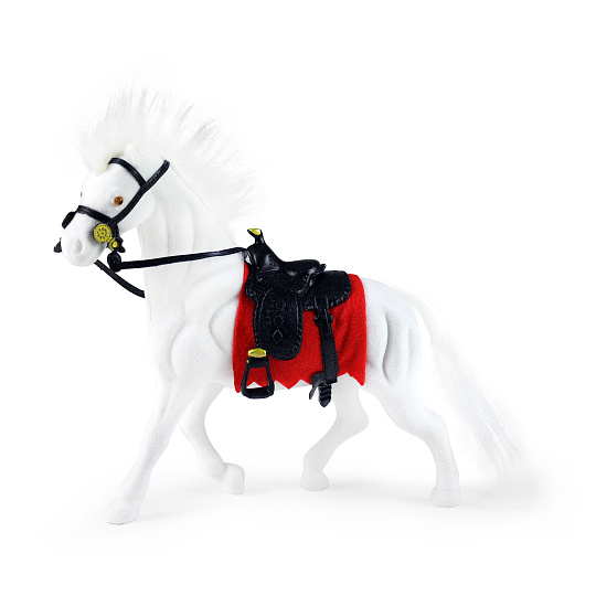 Tento koník z flisky je i osedlán a díky své kompaktní velikosti 16 cm je ideální pro hraní doma i na cestách. Děti s tímto koníkem mohou zažít nekonečné příběhy a dobrodružství.