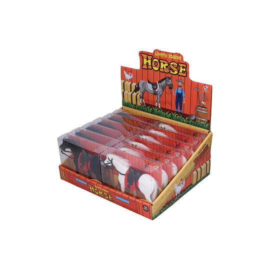 Kůň figurka. Velikost 14 cm. 2 varianty- černá, bílá. Display box - 12 ks.
