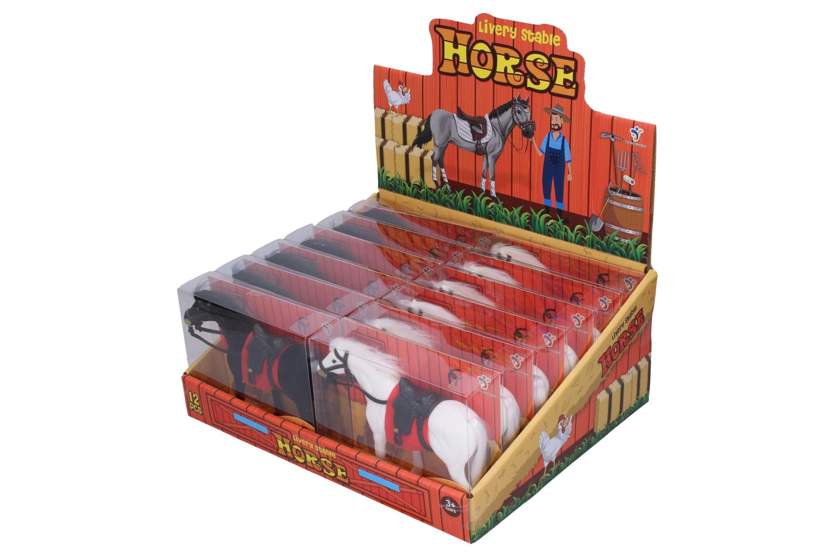 Kůň figurka. Velikost 14 cm. 2 varianty- černá, bílá. Display box - 12 ks.