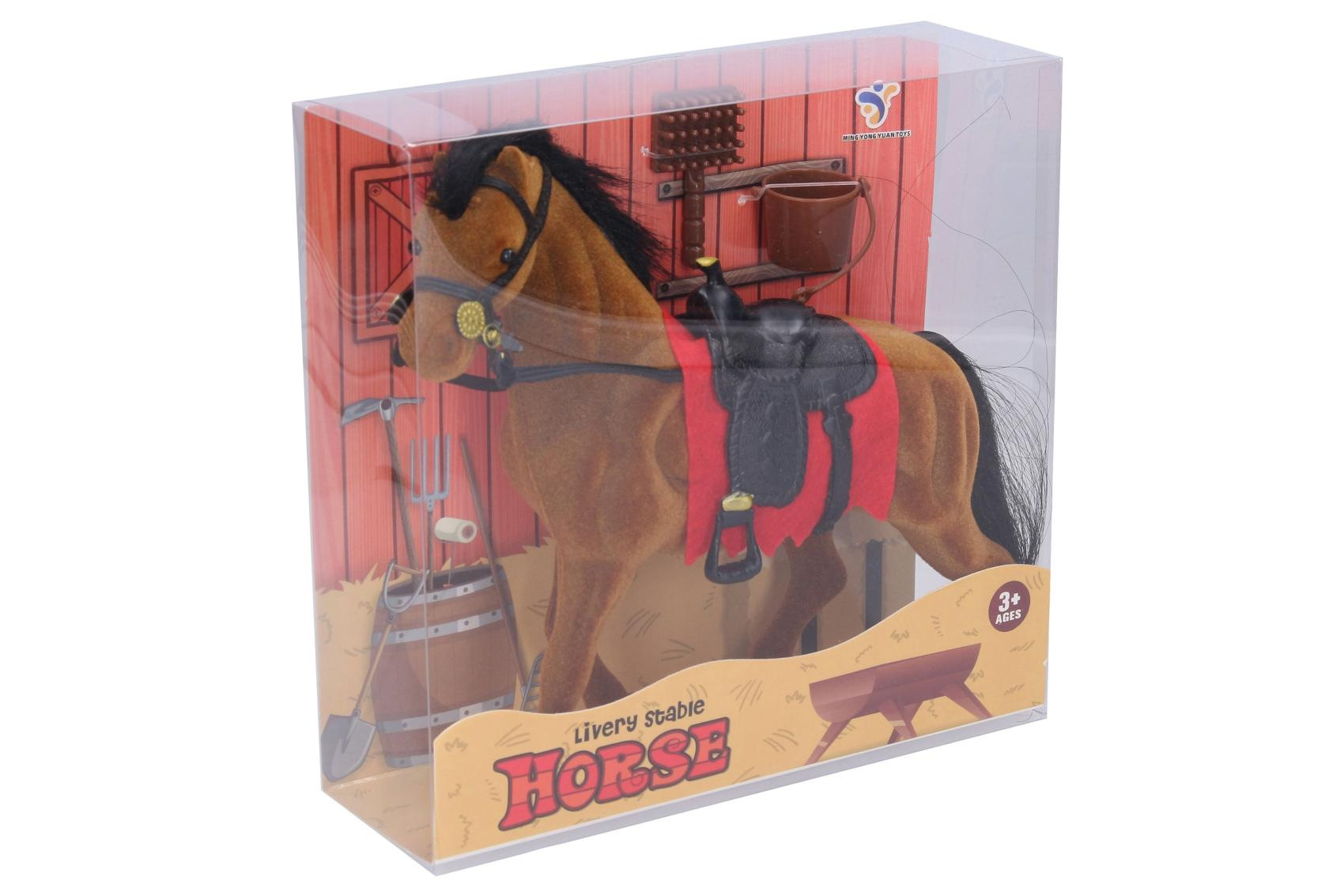 Wiky Kůň fliška se sedlem 17cm s doplňky 3 barvy v plastové krabičce 18x17cm
