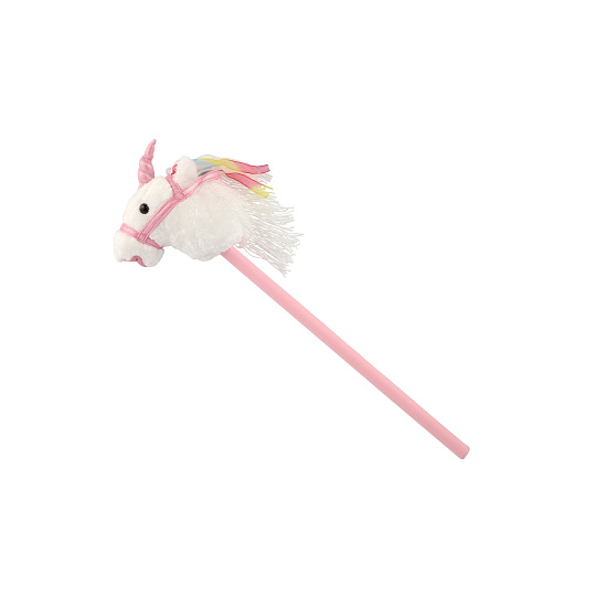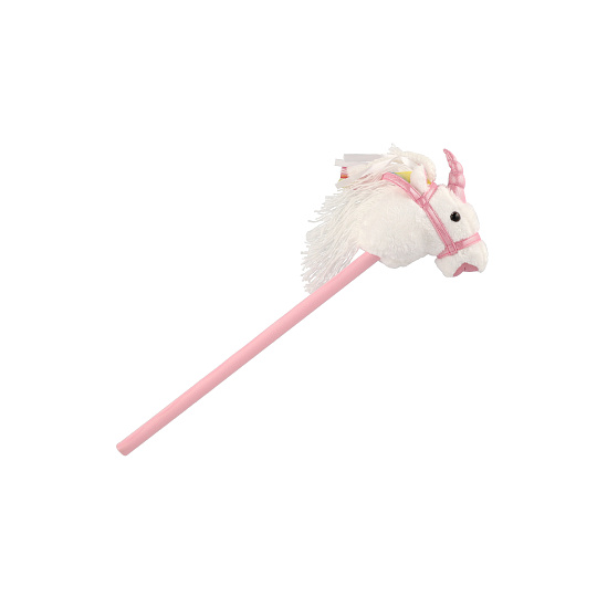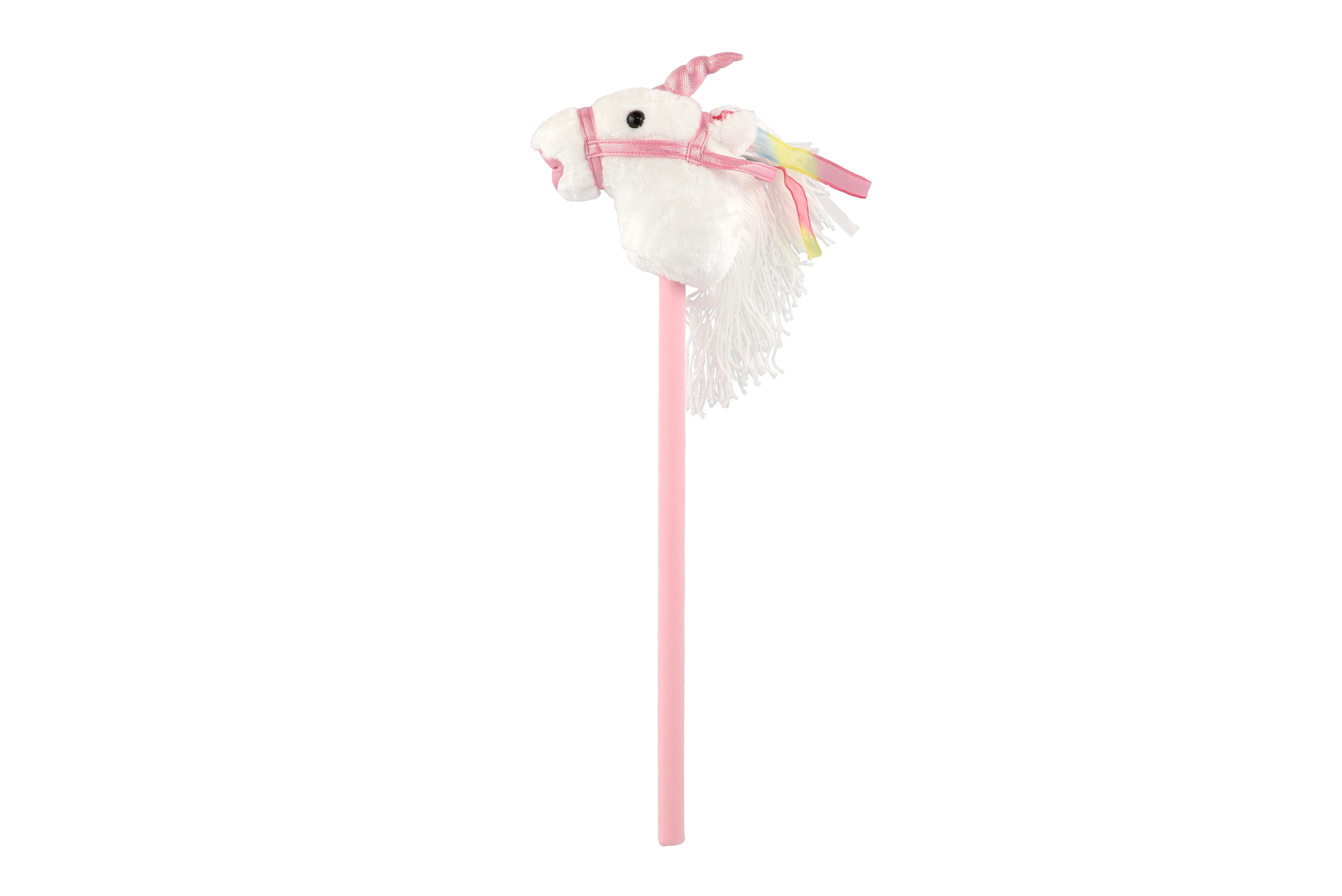 Kůň jednorožec na tyči plyš 80cm na baterie se zvukem bílý v sáčku