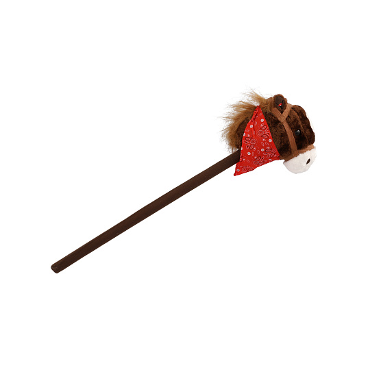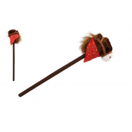 Kůň na tyči plyš 80cm na baterie se zvukem hnědý v sáčku
