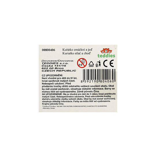 Teddies Kuřátko Zmáčkni a jeď plast 7x8cm na setrvačník 4 barvy