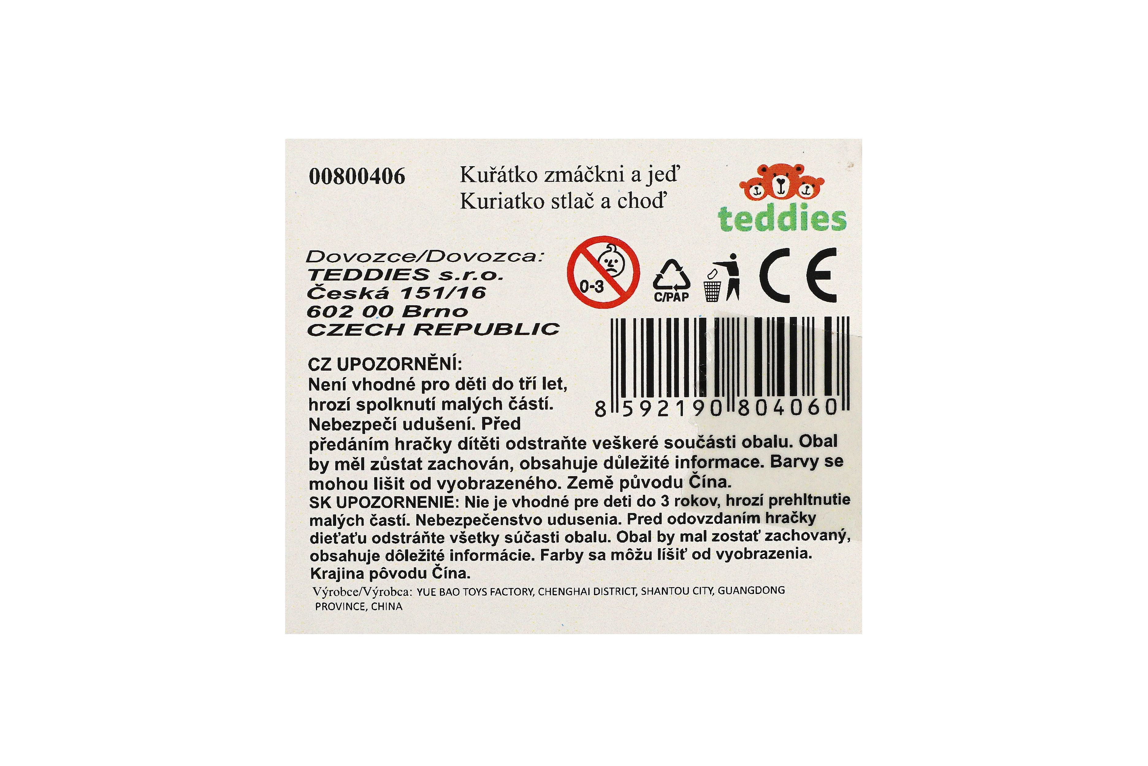 Teddies Kuřátko Zmáčkni a jeď plast 7x8cm na setrvačník 4 barvy