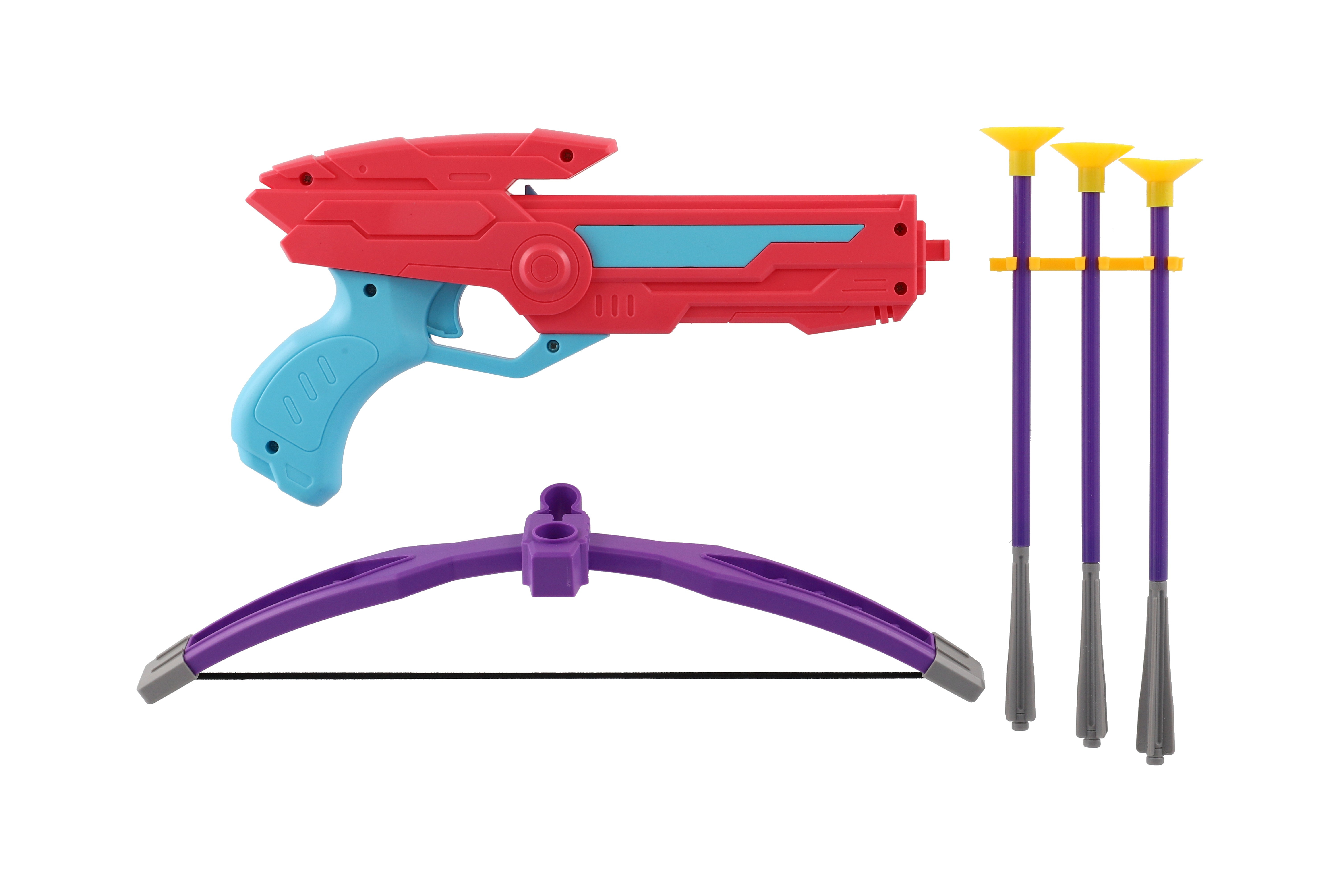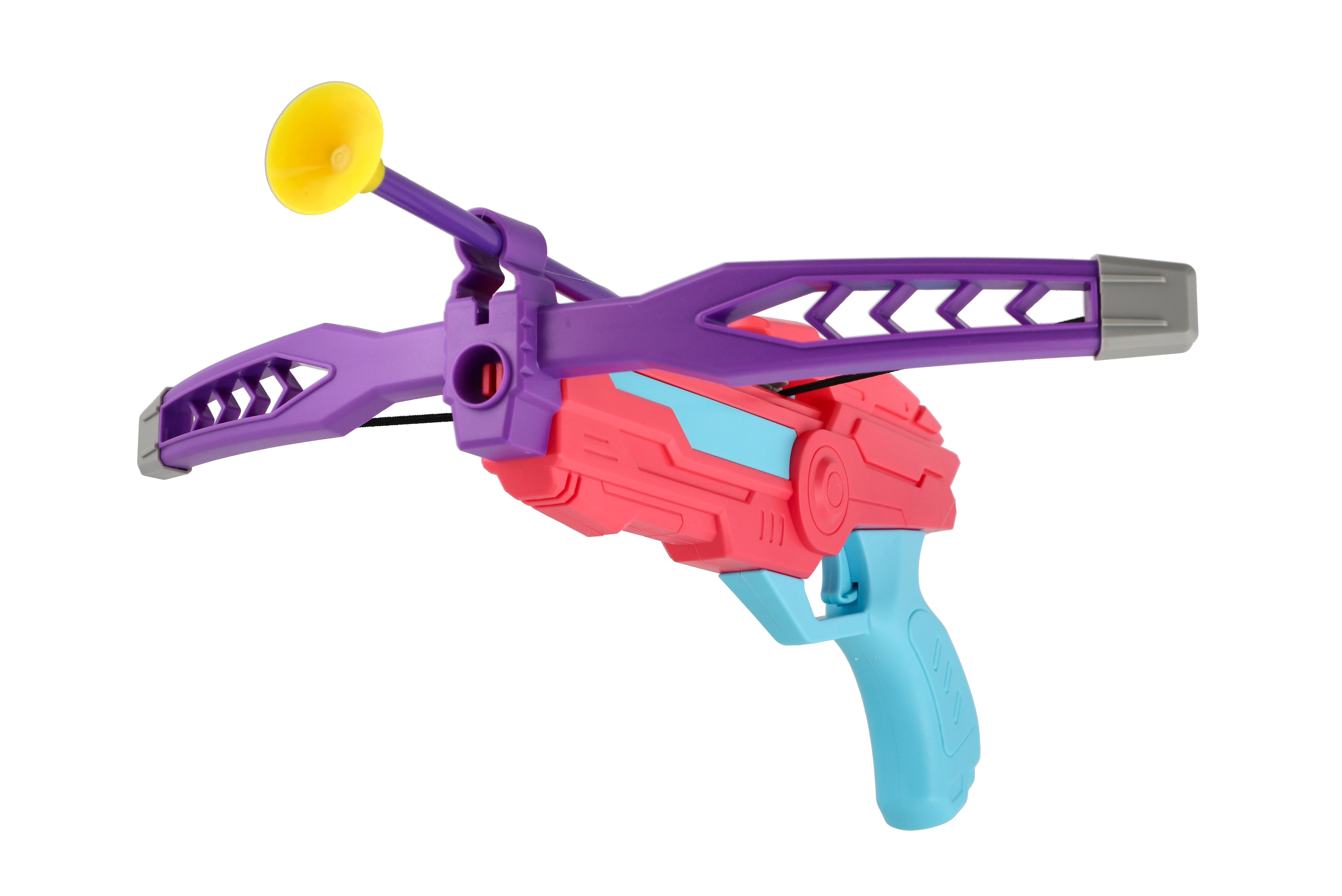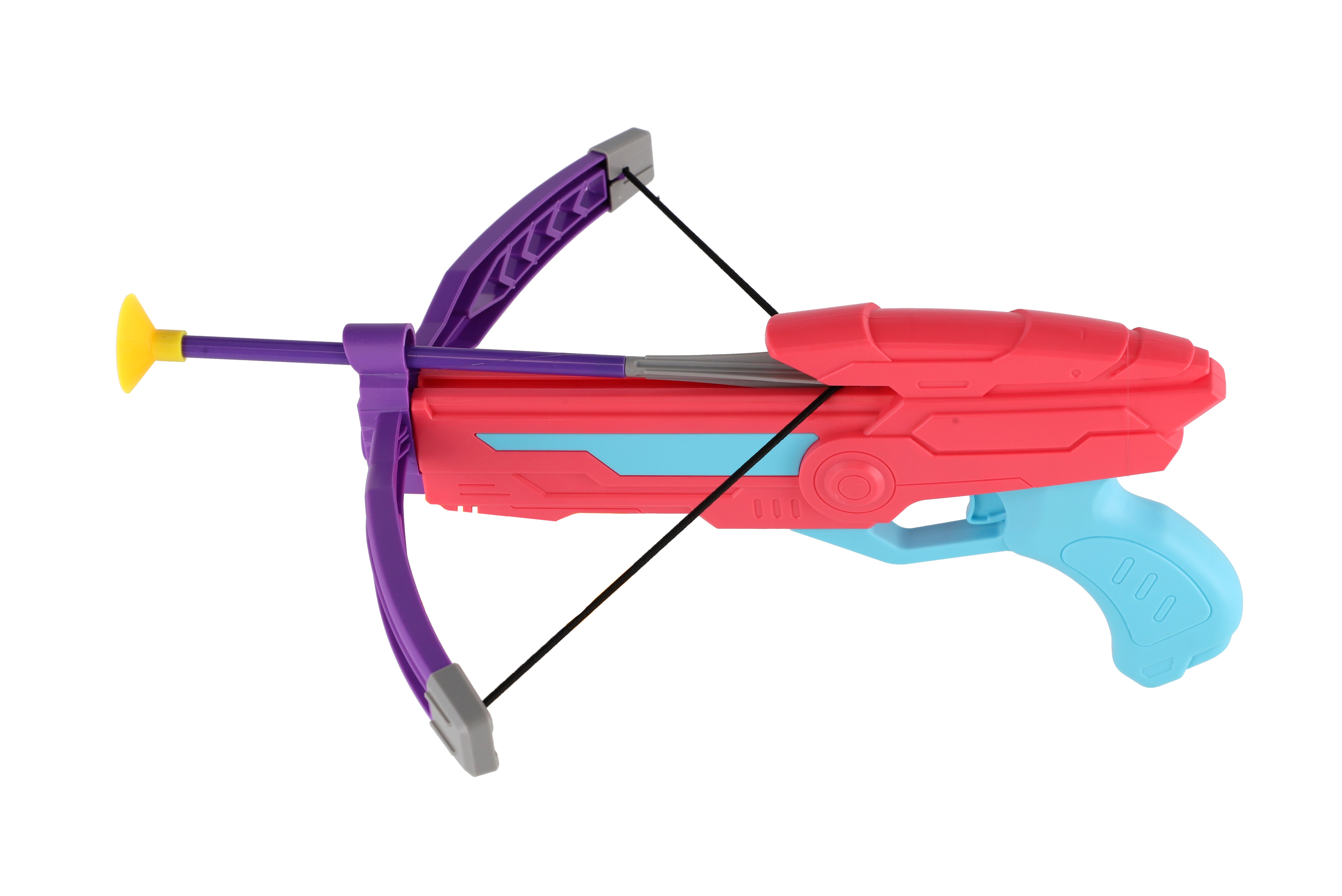Barevná plastová kuše se třemi šípy nabízí bezpečnou střelbu na cíl. Konce šípů jsou opatřeny přísavkami. Dětem tak nehrozí zranění. Rozměry balení 33 x 21 x 5 cm. Vhodné pro děti od 3 let.