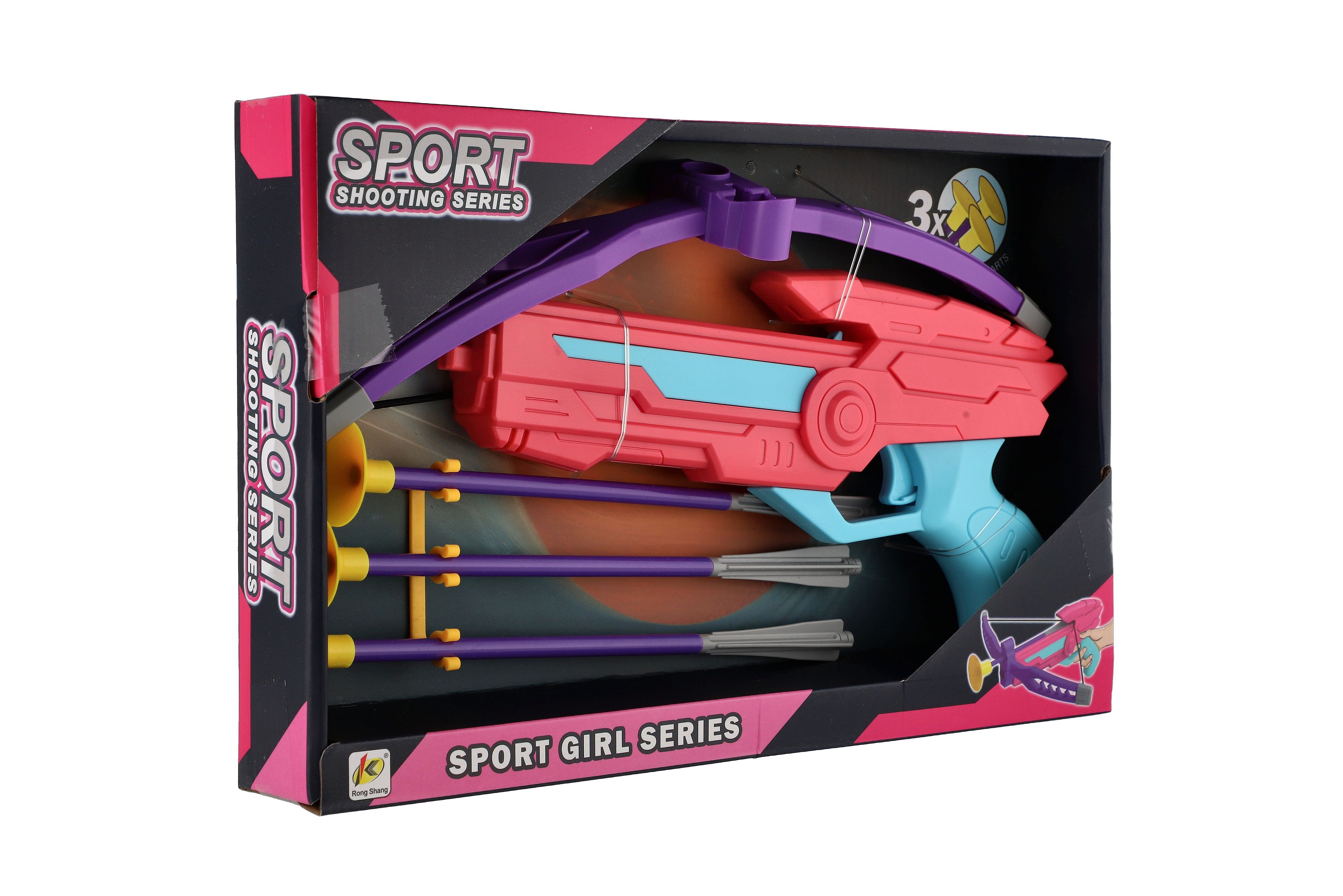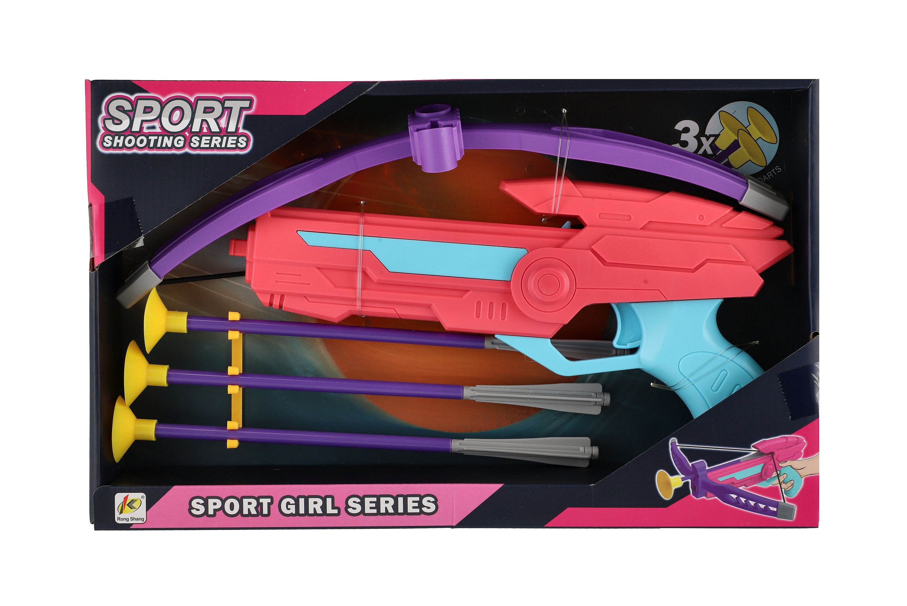 Kuše 27cm + šípy na přísavky 3ks plast růžová v krabici 33x20,5x5cm