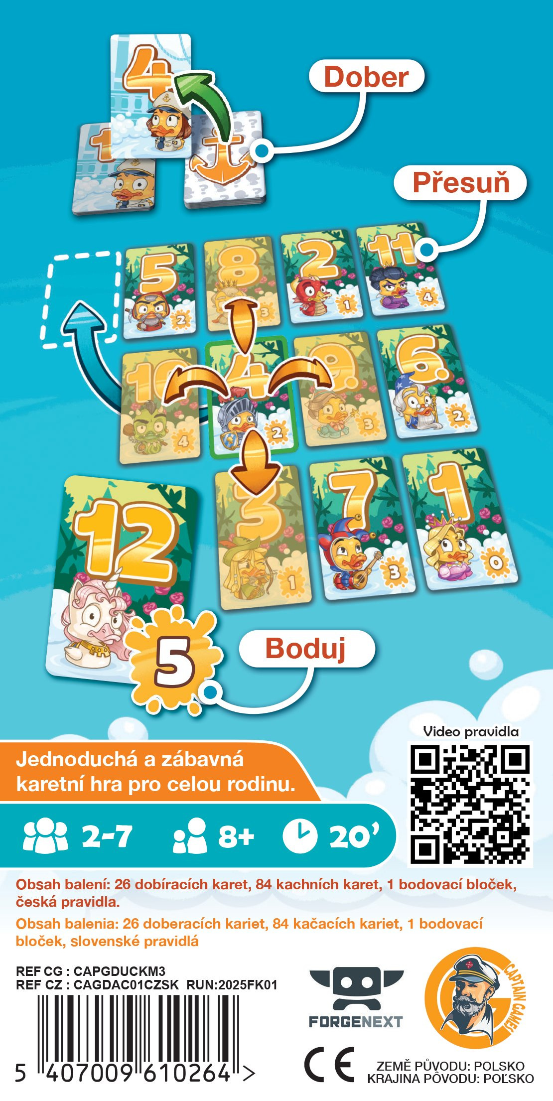 Pokud kváknou všichni hráči, Kapitán umístí právě dobranou kartu do odhazovací oblasti.