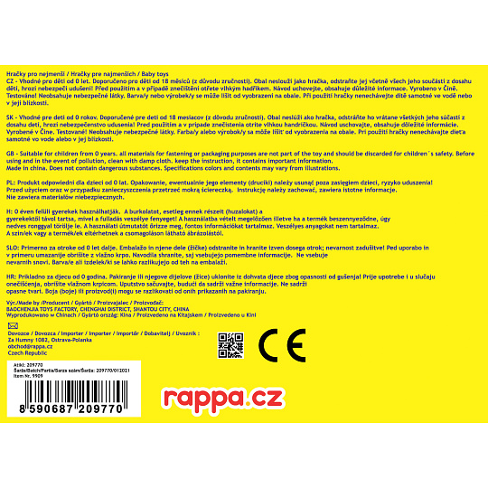 Gumová kachnička do vany. Délka 8 cm. Displej 12 ks. Barva: 6x žlutá, 2x růžová, 2x modrá, 2x zelená.