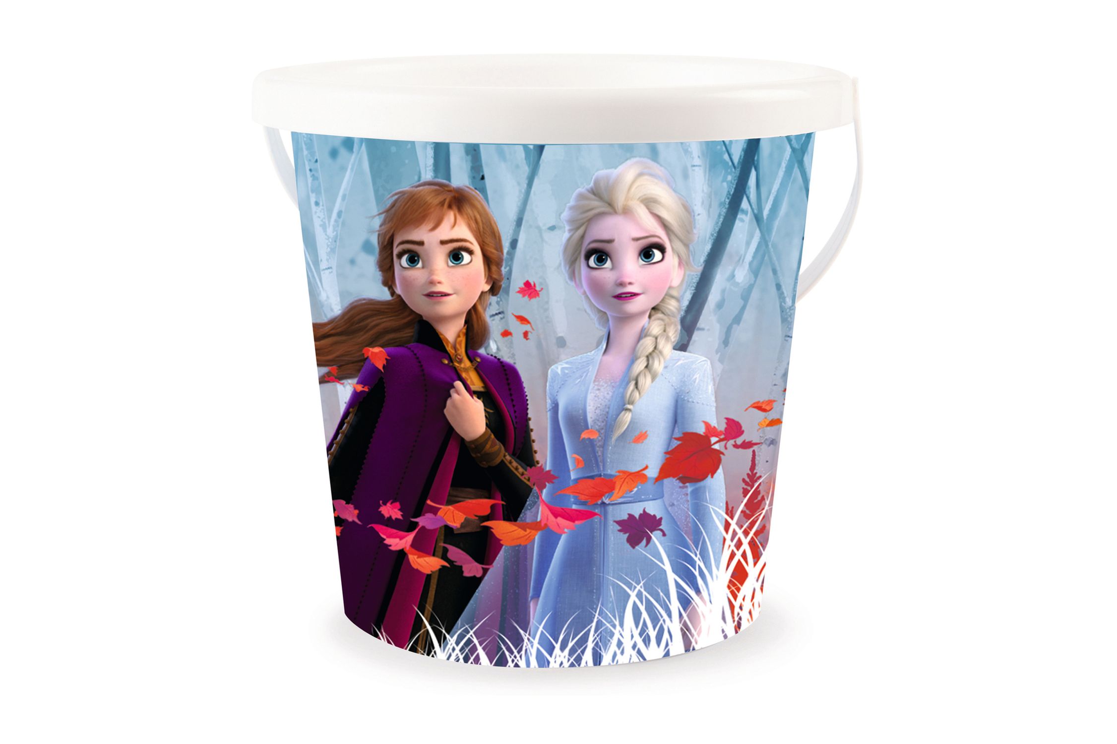 Kyblíček na písek s motivem licence Ledové království 2. Průměr kyblíčku 17 cm, výška 16 cm.