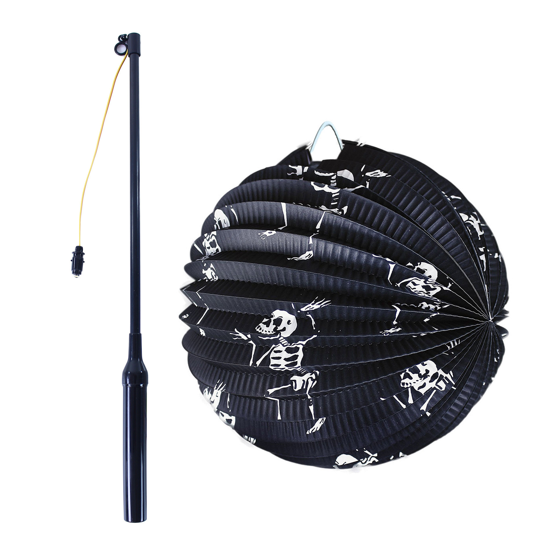 Lampion s halloweenským v černé barvě s bílým potiskem koster ti nesmí chybět na lampionovém průvodu! Součástí balení je i hůlka.