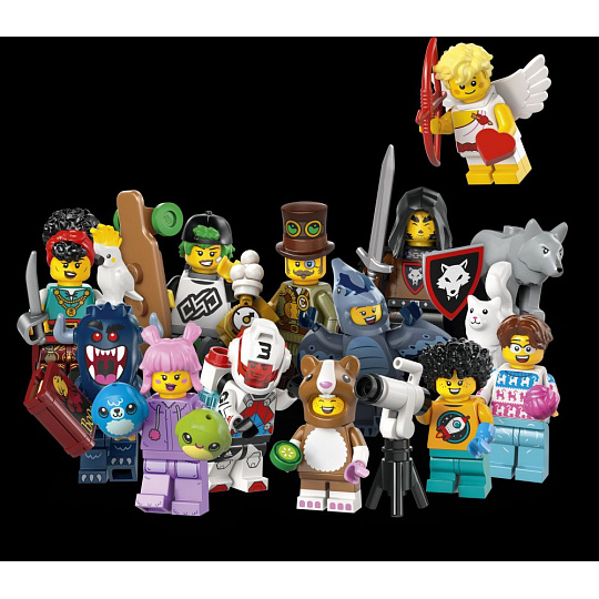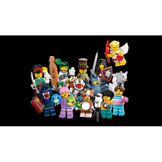 V balení najdete 1 náhodnou minifigurku LEGO a posbírat jich můžete celkem 12: Mistr vlčí smečky, Pirátská kormidelnice, Steampunkový vynálezce, Fanoušek v kostýmu pterodaktyla, Strašidlo, Závodník s jetpackem, Milovník koček, Longboardistka, Malá astronomka, Amorek, Fanynka v kostýmu křečka a Sběratelka plyšových hraček.