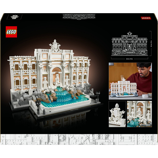 Vyzkoušejte si vylepšené stavitelské techniky a postavte si autentické detaily fontány, jako je fasáda paláce Palazzo Poli a slavné sochy Ókeana ve voze ve tvaru mušle a Hojnosti a Zdraví v podobě minifigurek. Součástí jsou také mořští koně a Tritoni ve vodě, malá „Fontána milenců“ na straně a cedulka s názvem, která dotváří velkolepý výstavní model Fontány di Trevi.