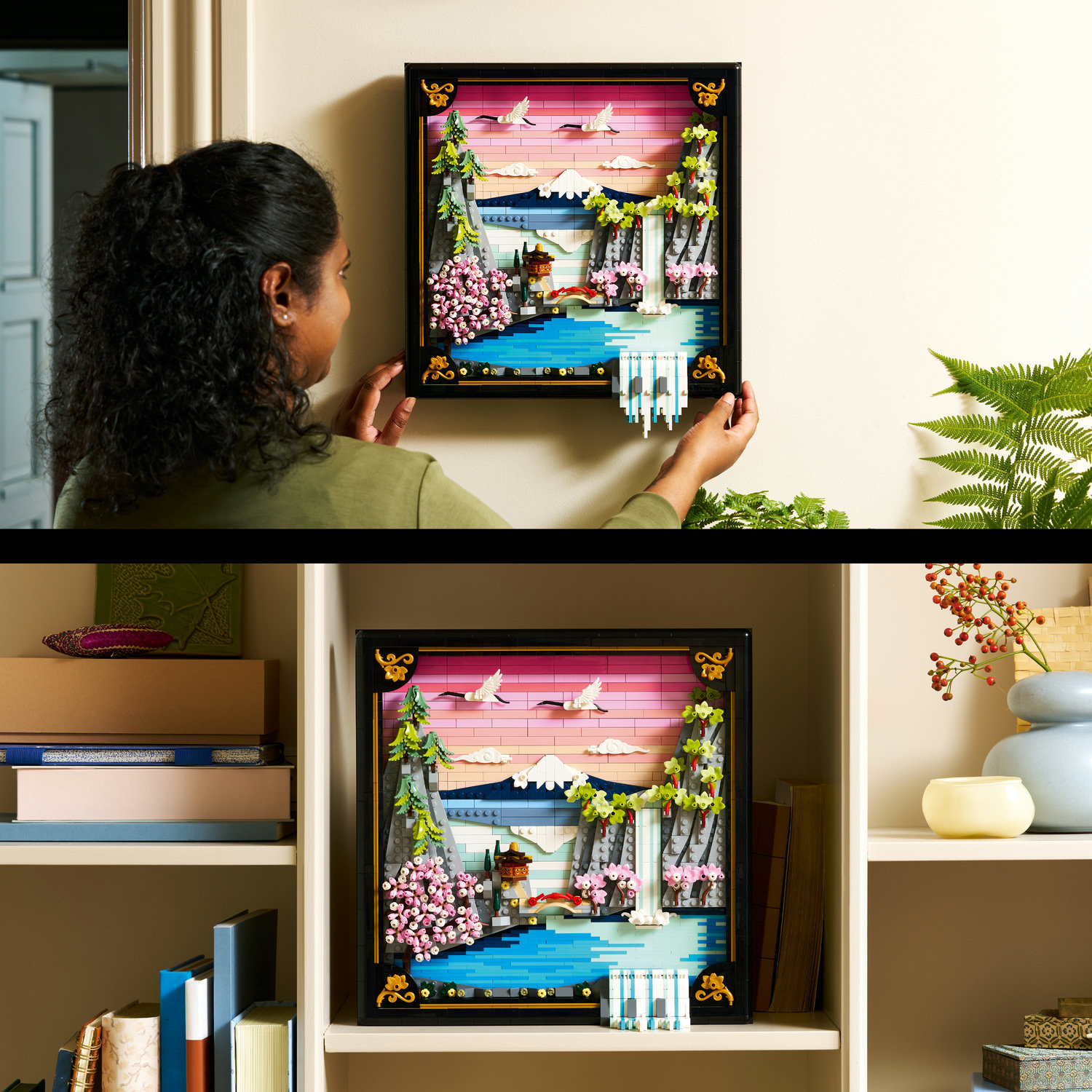 Inspirací pro tuto stavebnici se stalo tradiční japonské umění ukijo-e, které zachycuje krásu pomíjivosti a harmonii přírody. V modelu naleznete ikonické prvky japonské krajiny, jako je majestátní hora Fudži, tradiční čajovna, elegantní most, kaskádovitý vodopád a ladné létající jeřáby mandžuské. Nechybí ani symbol jara – rozkvetlé sakury, a unikátní javor „Sango-Kaku“ s korálově červenou kůrou, a elegantní japonské pajehličníky.