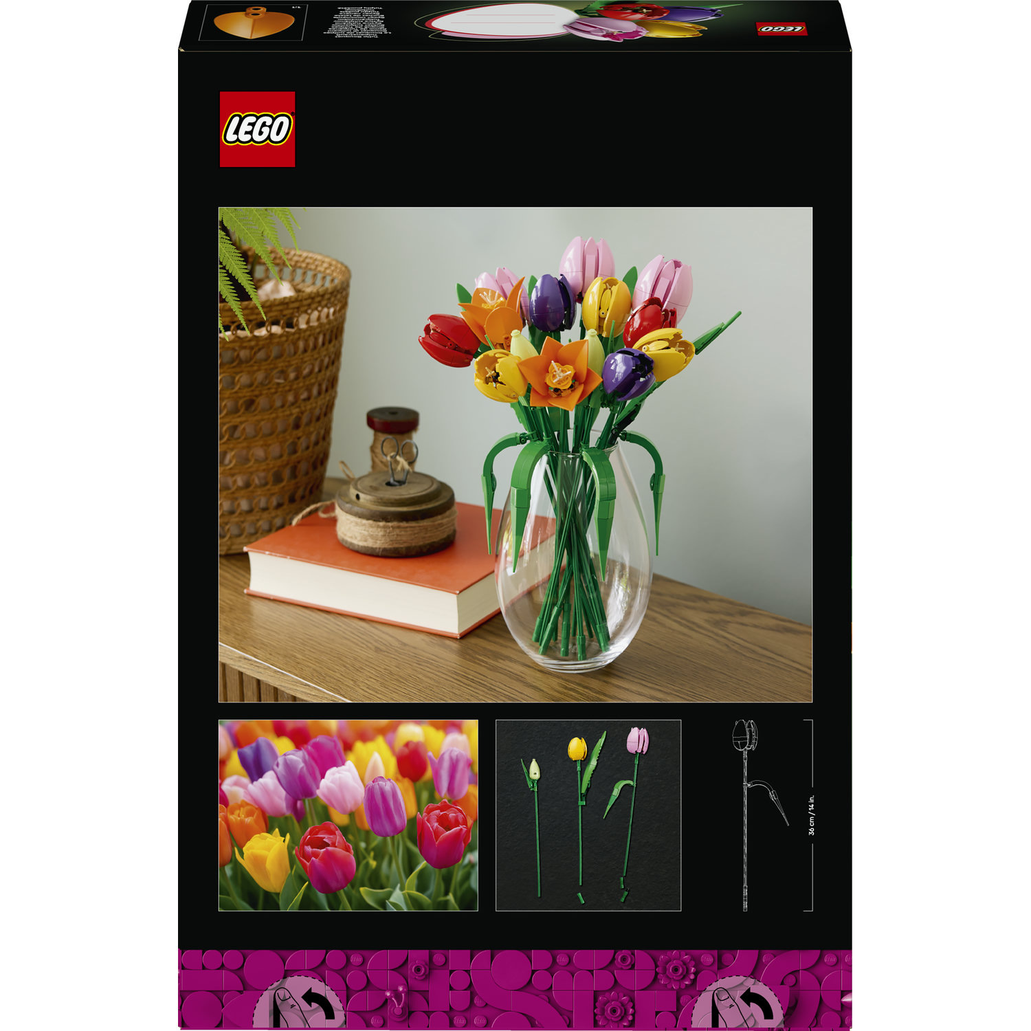 Díky nastavitelným stonkům si můžete tulipány naaranžovat přesně podle svých představ a vytvořit tak originální a osobitou dekoraci. Ať už je umístíte do vázy na jídelním stole, na poličku v obývacím pokoji nebo na pracovní stůl, tato kytice LEGO® rozzáří každý prostor a dodá mu nádech elegance a svěžesti.