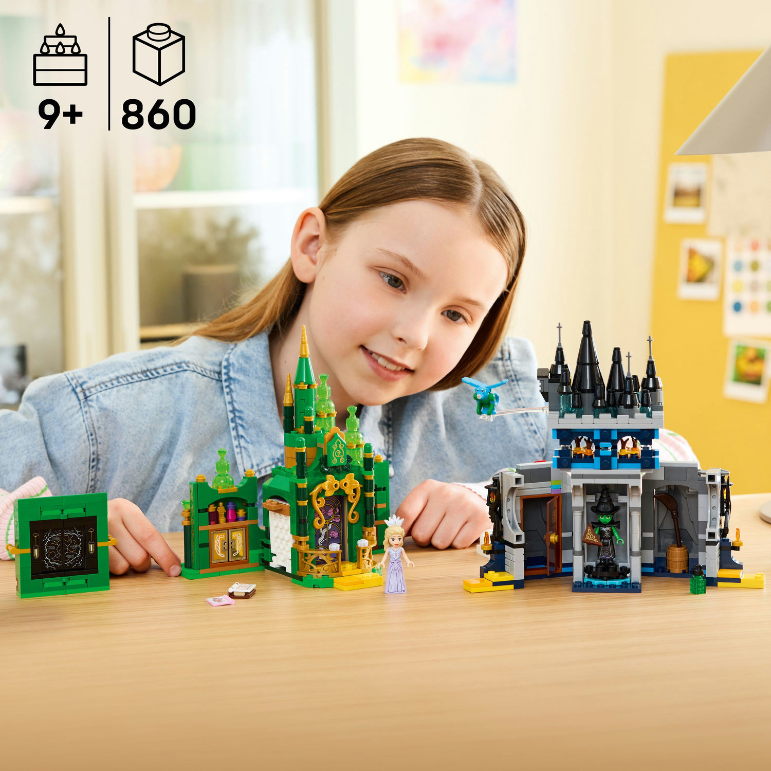 Jakmile si děti dohrají, mohou sestavený model Wicked uzamknout přisunutím motýlů k sobě a vystavit si jej v pokojíčku. Model můžete kombinovat s dalšími stavebnicemi LEGO Wicked, a užít si ještě více filmových dobrodružství. Stavebnice obsahuje 476 dílků.