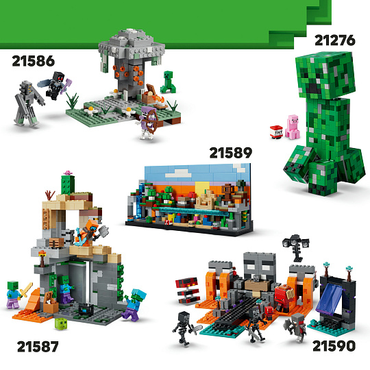 Liška LEGO® Minecraft® 21588 je vybavena pohyblivými nohami, otočným krkem, polohovatelnou hlavou a otočnými očima. Díky tomu ji můžete napolohovat do různých pozic – může stát, sedět s nakloněnou hlavou, nebo dokonce ležet a spát! Můžete si tak vytvořit vlastní scény z Minecraftu a oživit své oblíbené herní momenty.