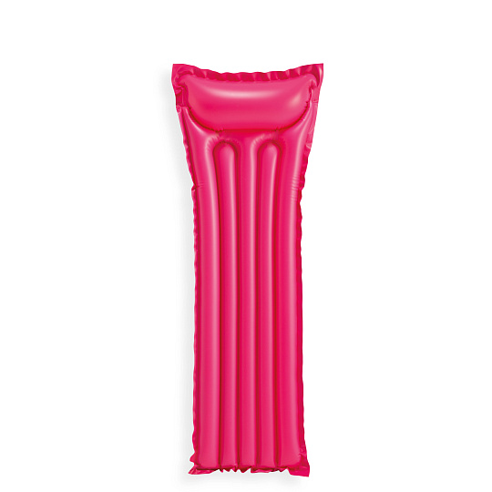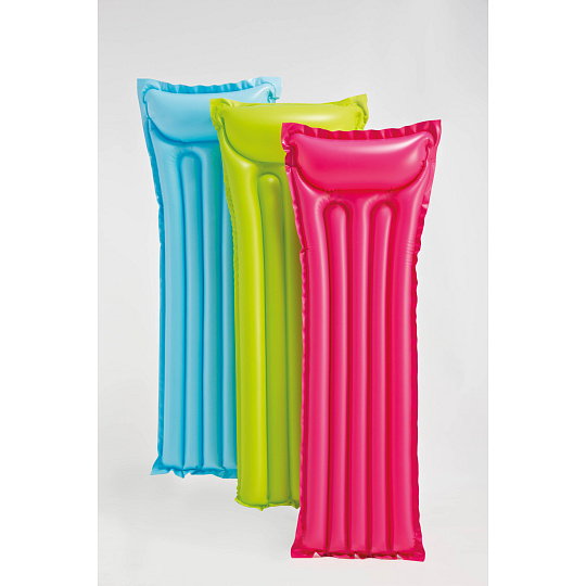 Nafukovací lehátko o rozměrech 183 x 69 cm, v zářivých barvách a s integrovaným polštářem. 2 vzduchové komory a vinyl o tloušťce 0,20 mm zajišťují pevnost a příjemný komfort při ležení. V nabídce ve 3 různých barvách. Maximální zatížení: 80 kg.