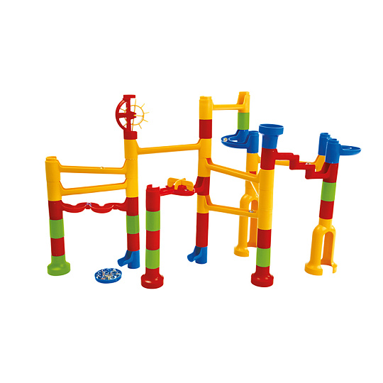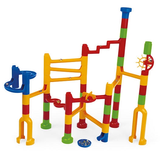 Kuličková dráha umožňuje sledovat cestu kuličky a její rychlost z horní části až dolů. Která kulička bude rychlejší a které sestavení dráhy bude zajímavější? Barevná kuličková dráha obsahuje spoustu překážek, které zvyšují napětí, zda kulička správně proběhne celou stavebnicí. Sestavit dráhu může dítě mnoha způsoby, dle vlastní fantazie.
