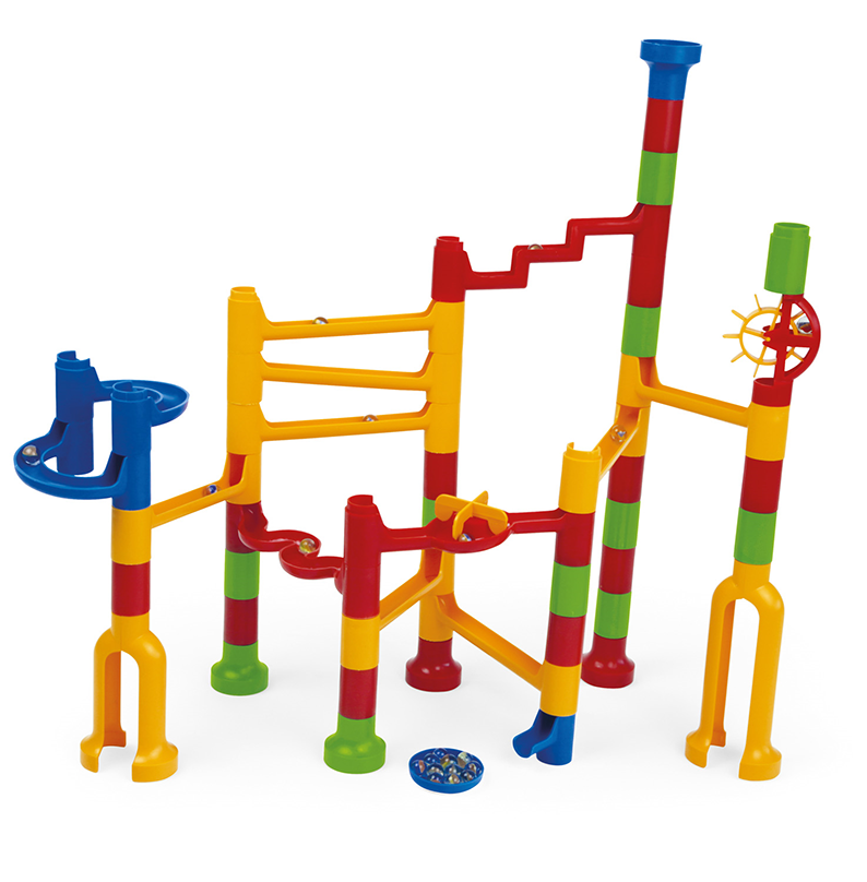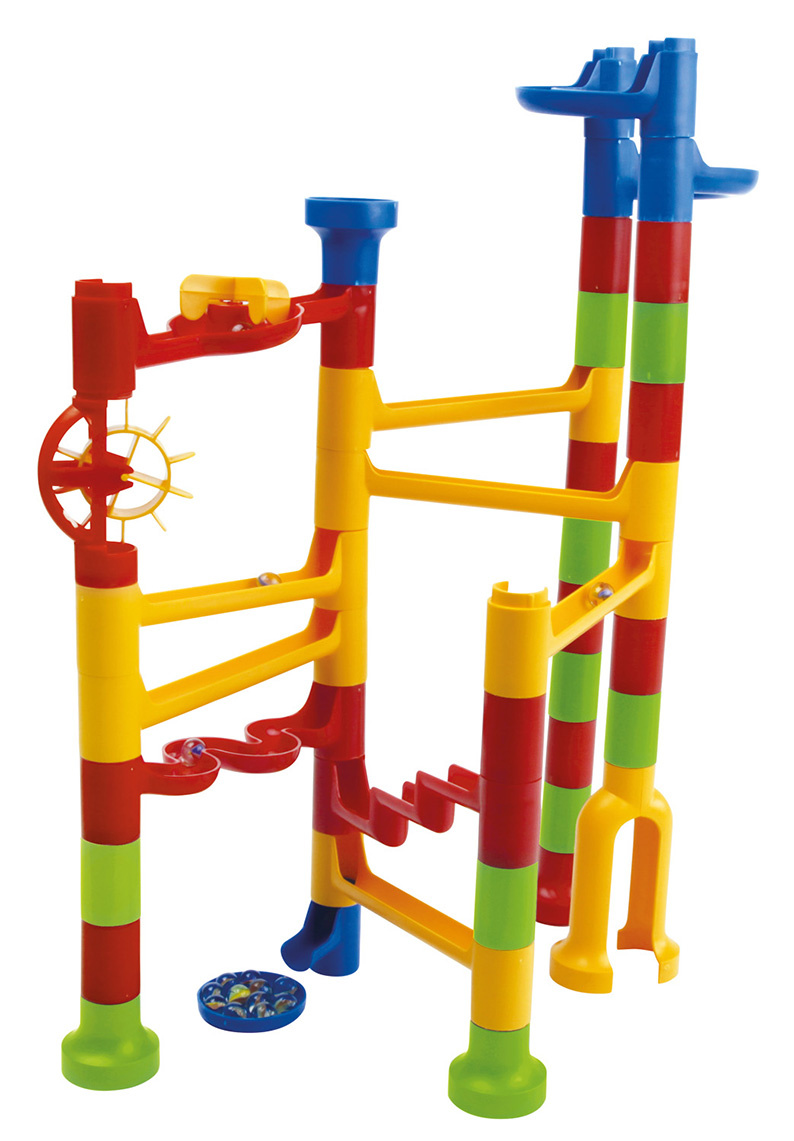 Kuličková dráha umožňuje sledovat cestu kuličky a její rychlost z horní části až dolů. Která kulička bude rychlejší a které sestavení dráhy bude zajímavější? Barevná kuličková dráha obsahuje spoustu překážek, které zvyšují napětí, zda kulička správně proběhne celou stavebnicí. Sestavit dráhu může dítě mnoha způsoby, dle vlastní fantazie.