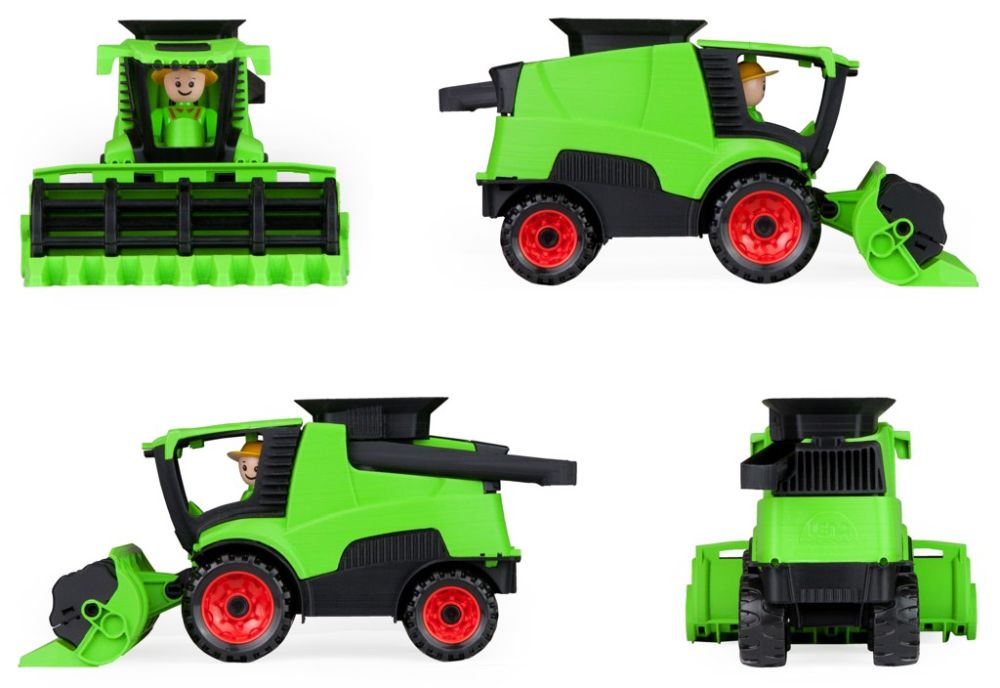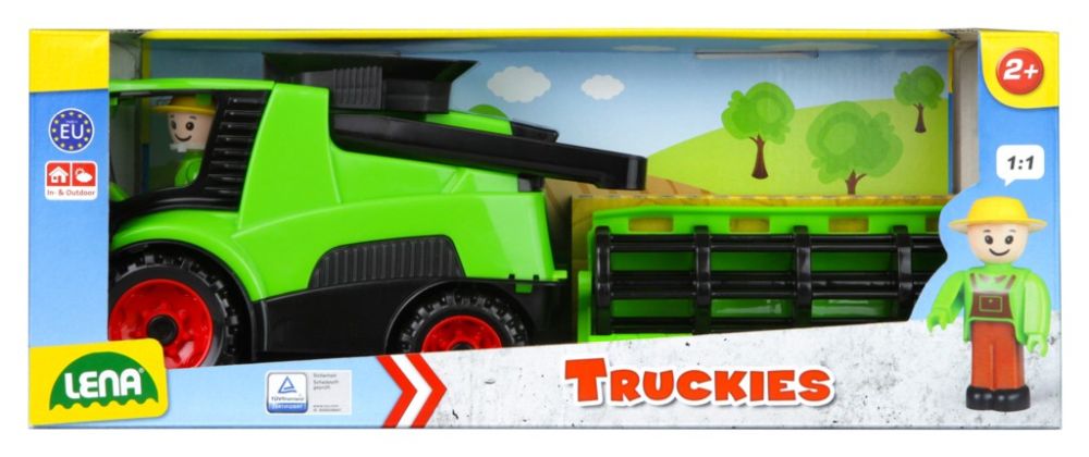 Truckies kombajn z kvalitního plastu a velmi pevnou stavbou. Plně mechanicky funkční. Obsahuje odklopitelnou kabinu s aktivním panáčkem. Vhodné od 2 let.