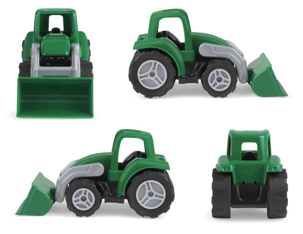 Traktor vyrobený z odolného ABS plastu s vysoce kvalitními pogumovanými koly. 4mm pozinkované ocelové osy. Velikost 14 cm