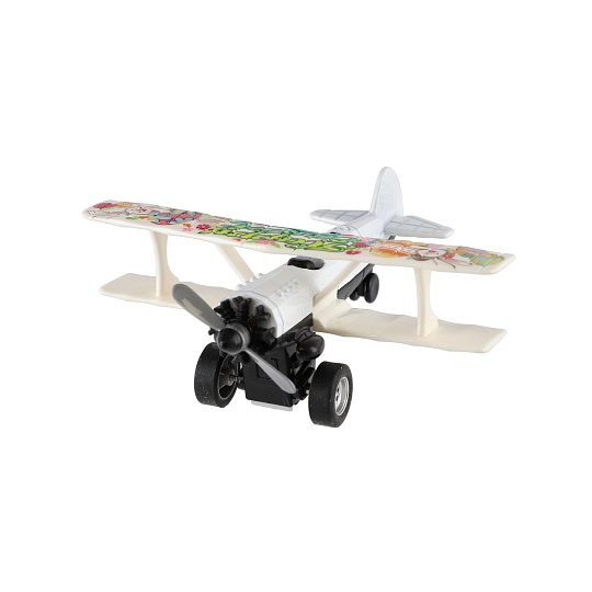 Každý malý pilot uvítá toto nádherně barevné letadlo do své sbírky. Letadlo je na zpětné natažení a při pohybu se točí vrtule umístěná na přední části. Rozměr letadla: 10 x 11 cm. Vhodné pro děti od 3 let.