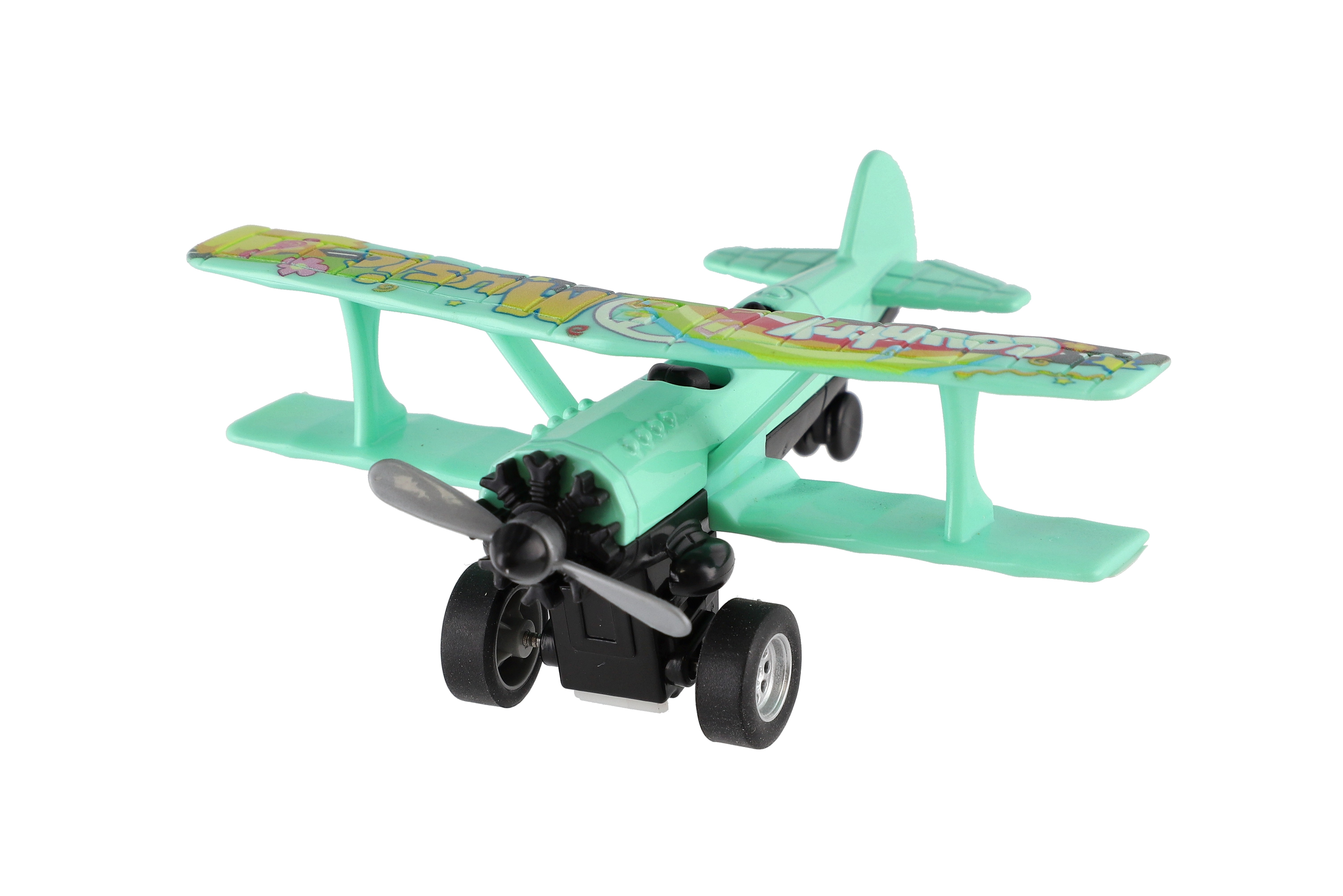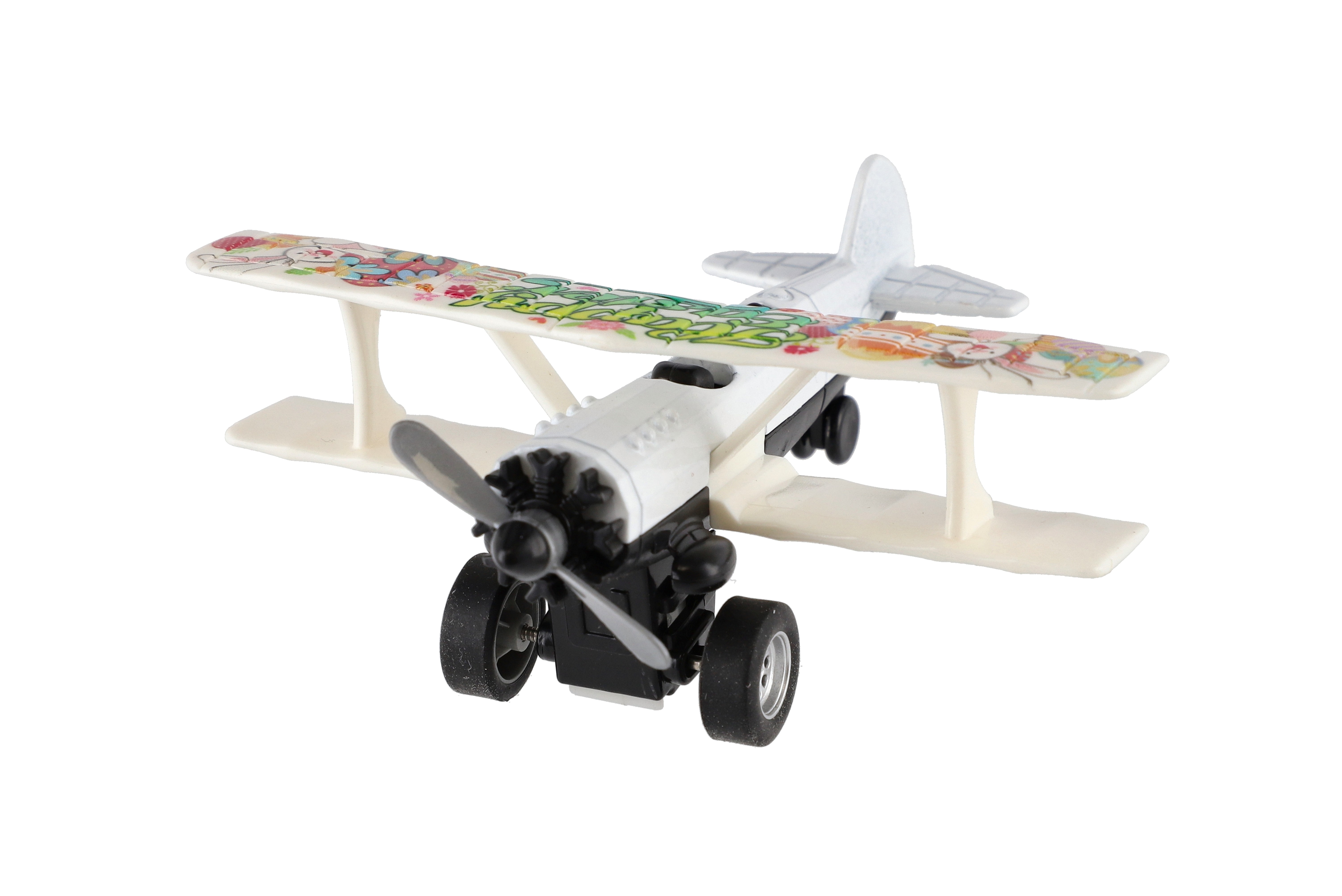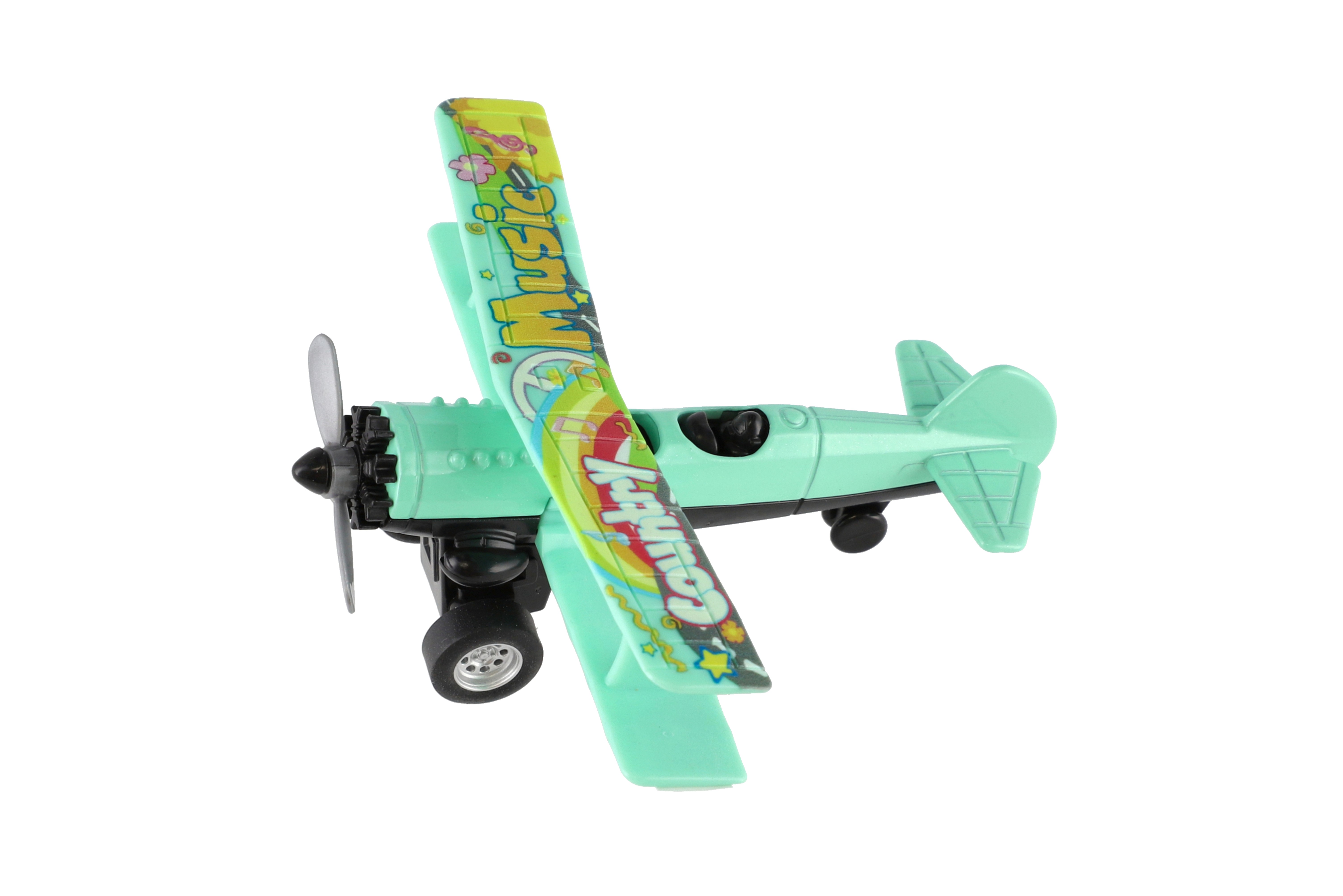 Každý malý pilot uvítá toto nádherně barevné letadlo do své sbírky. Letadlo je na zpětné natažení a při pohybu se točí vrtule umístěná na přední části. Rozměr letadla: 10 x 11 cm. Vhodné pro děti od 3 let.