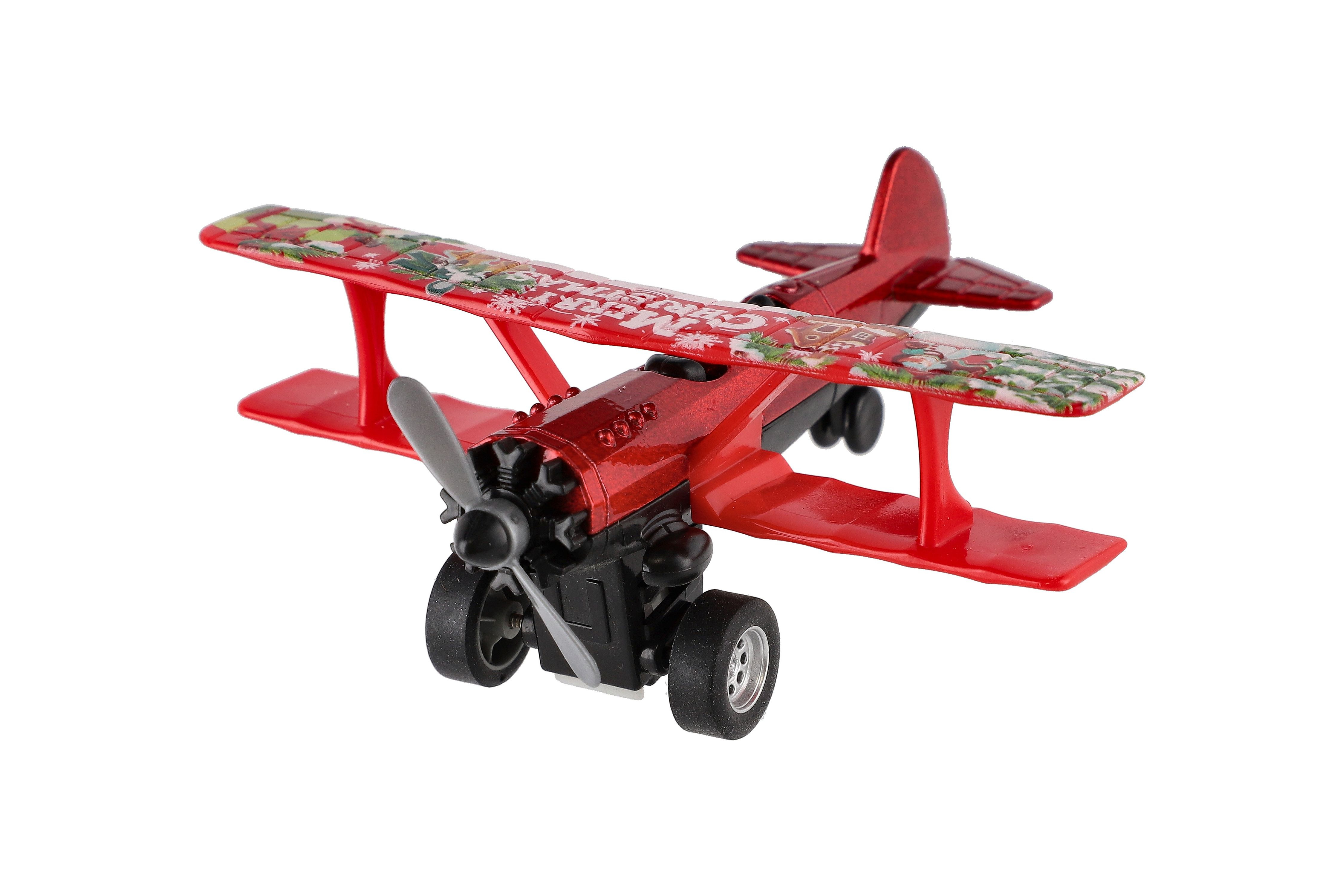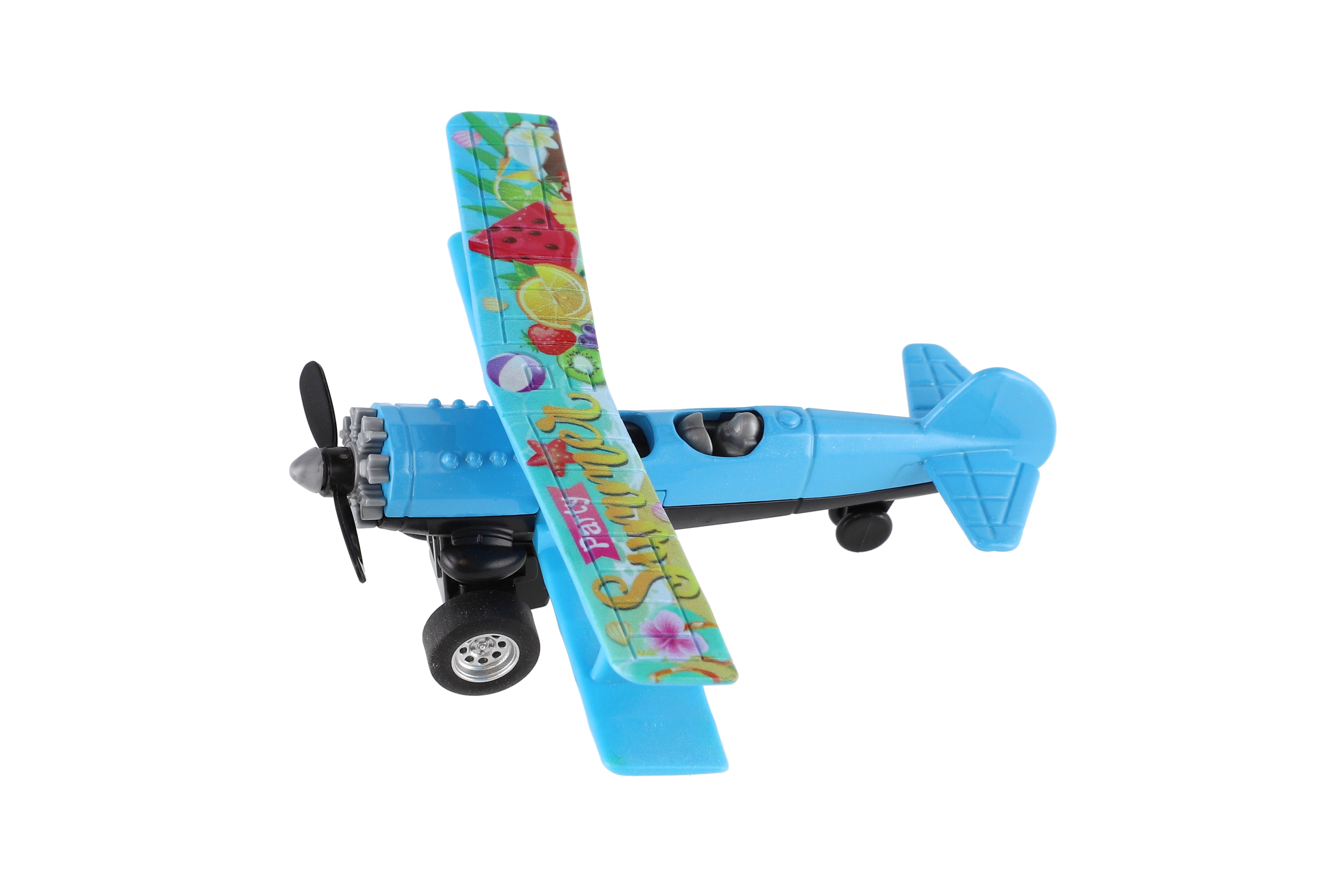 Letadlo dvouplošník kov/plast 10x11cm na zpětné natažení mix barev na kartě