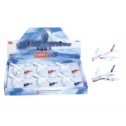 Letadlo kovové. Rozměry 14x13x4 cm. Na zpětné natažení. 6 ks display box. 2 varianty - modrá, červená.