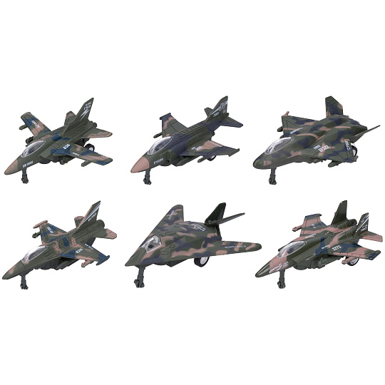 Stíhačka velikost 12cm. 6 různých ks v display boxu, na zpětné natažení. měřítko 1:128