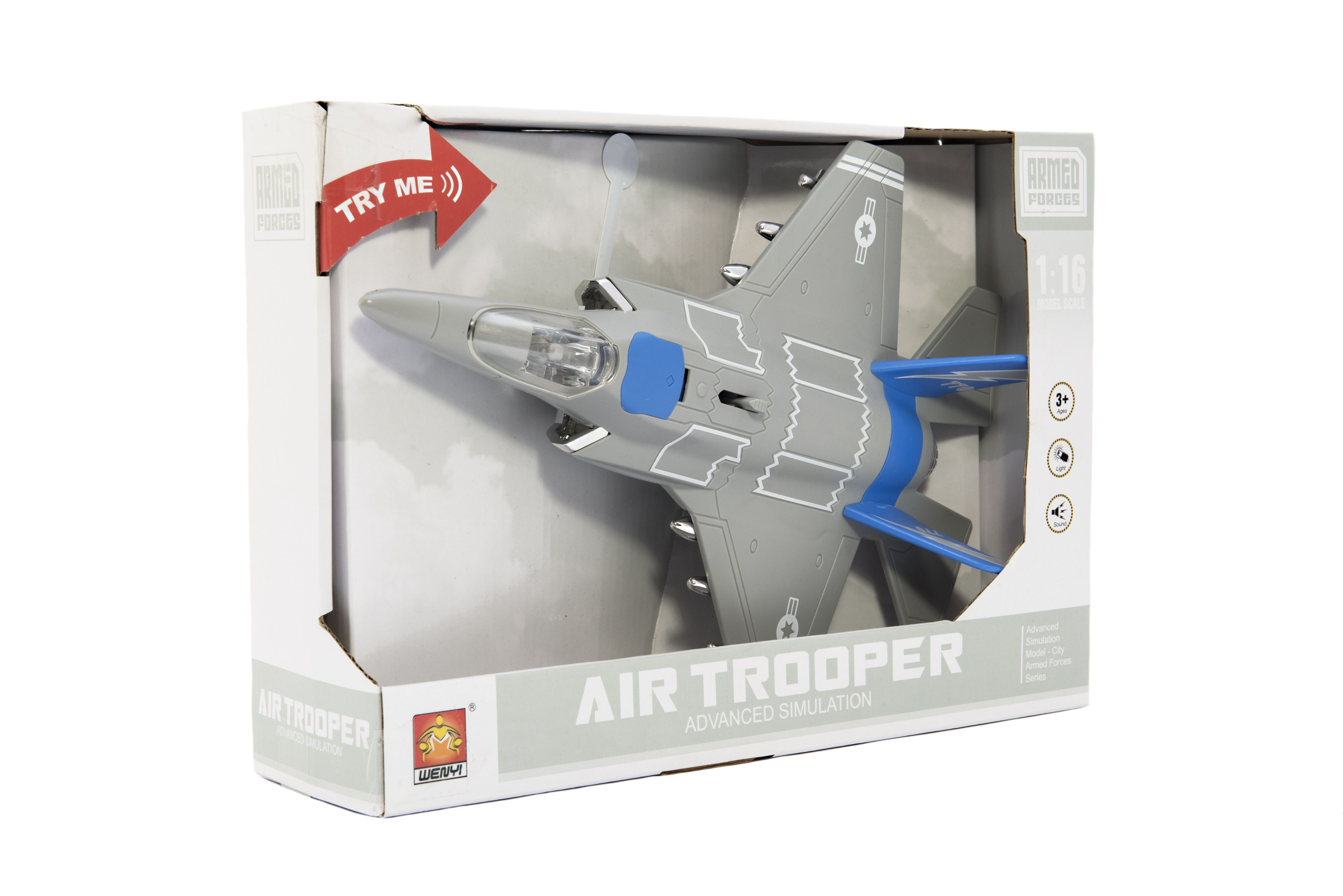Teddies Letadlo/stíhačka plast 31cm na baterie se světlem se zvukem v krabici 32x22,5x9cm
