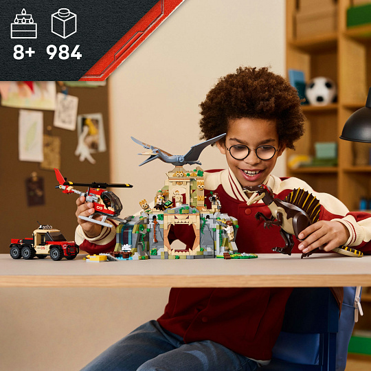 Děti i dospělí si zamilují vodního i létajícího dinosaura z této stavebnice, kterou lze kombinovat s ostatními stavebnicemi LEGO Jurassic World (prodávají se samostatně). A aplikace LEGO Builder provede děti intuitivním stavitelským dobrodružstvím, které jim umožní přibližovat a otáčet modely ve 3D, ukládat stavebnice a sledovat postup stavění. Stavebnice obsahuje 984 dílků.