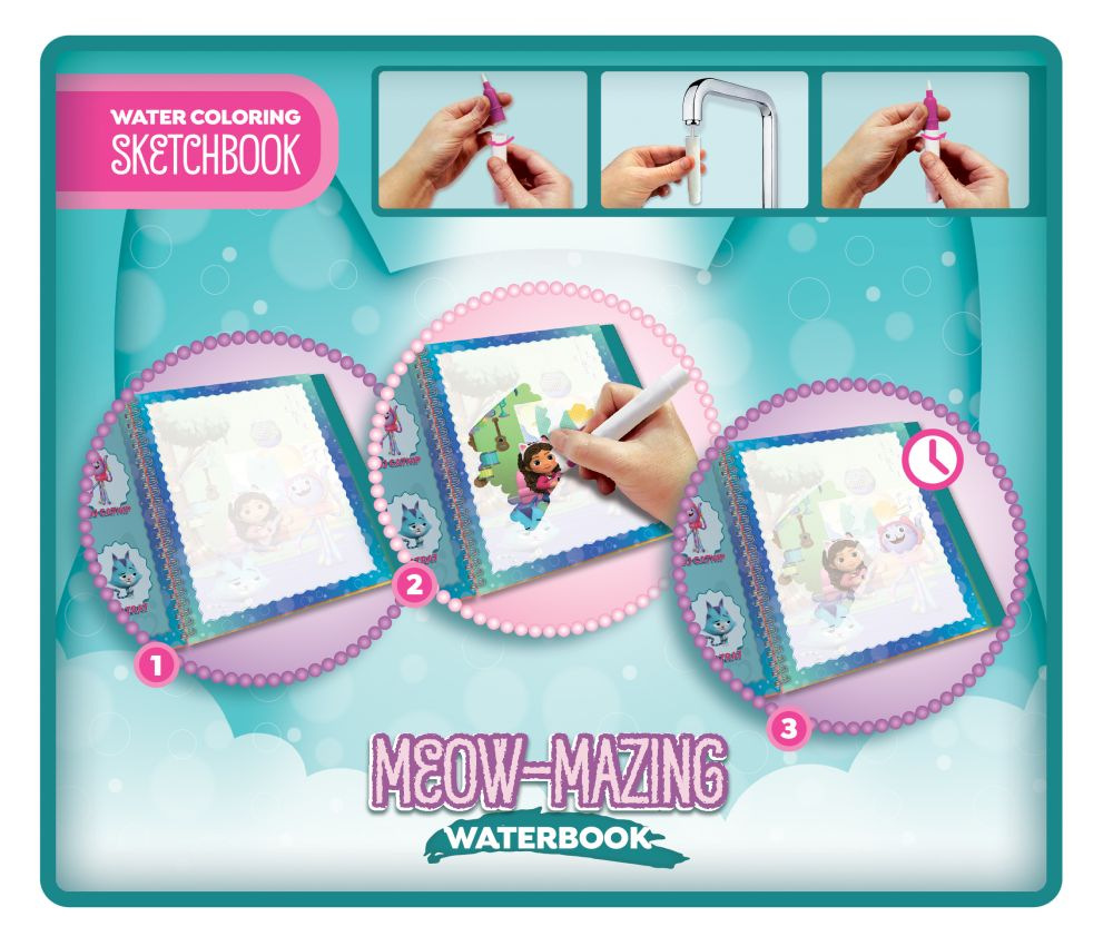 Fantastická kniha vyrobená ze speciálního papíru, který odhaluje kresby ve vodě. Kniha se skládá z prázdných stránek, které po navlhčení vodním perem vynesou obrázky skryté uvnitř. Po 5/10 minutách stránky uschnou a kresba přirozeně zmizí.