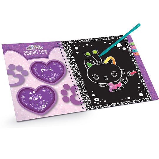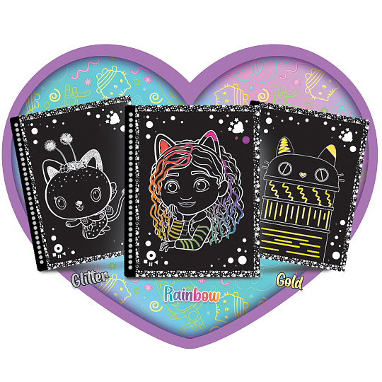 Objevte kouzlo barev s Gabby's scratch odhalením. Bavte se při vybarvování a zdobení všech obrázků seškrábáním černého povrchu a objevováním spousty jiskřivých a barevných efektů.
