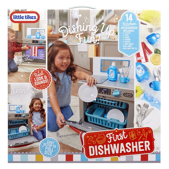 Little Tikes Moje první myčka je interaktivní hračka, která je navržena tak realisticky, že vypadá jako skutečná myčka. Děti mohou předstírat, že myjí v kuchyni stejně jako jejich rodiče.