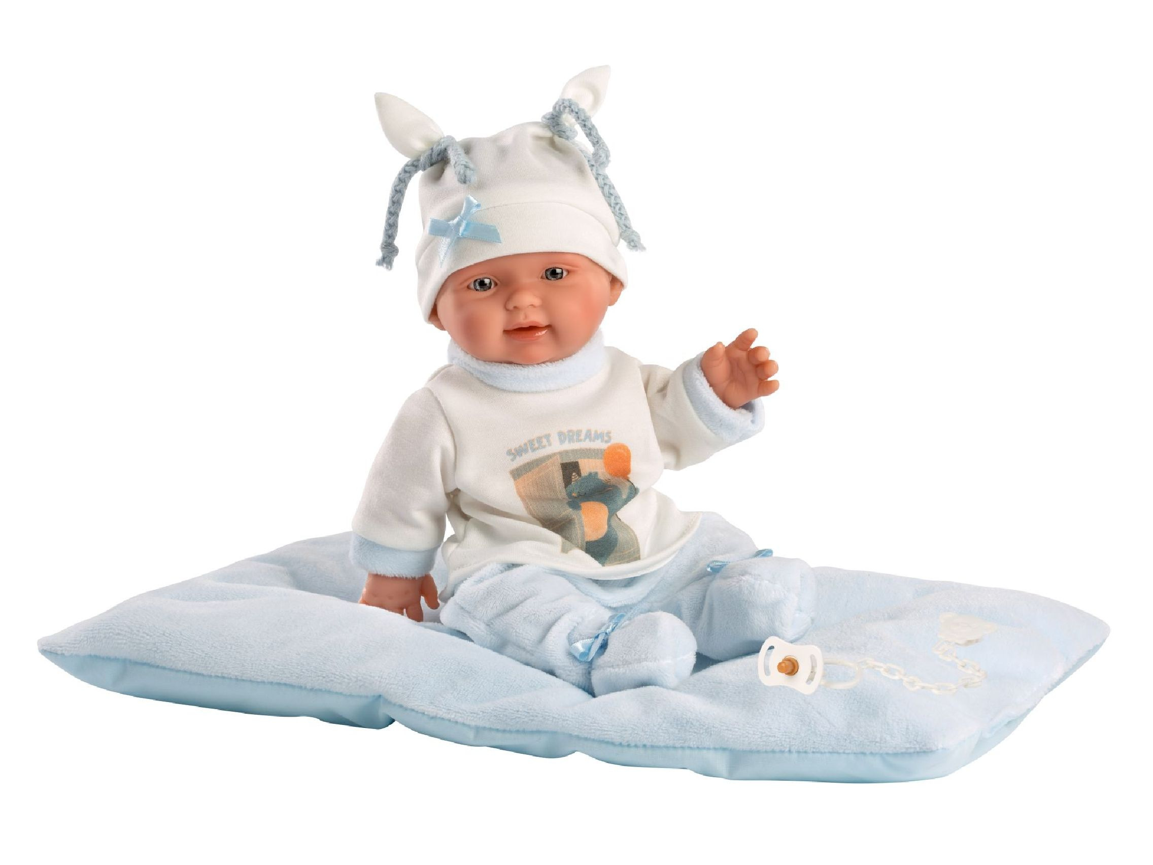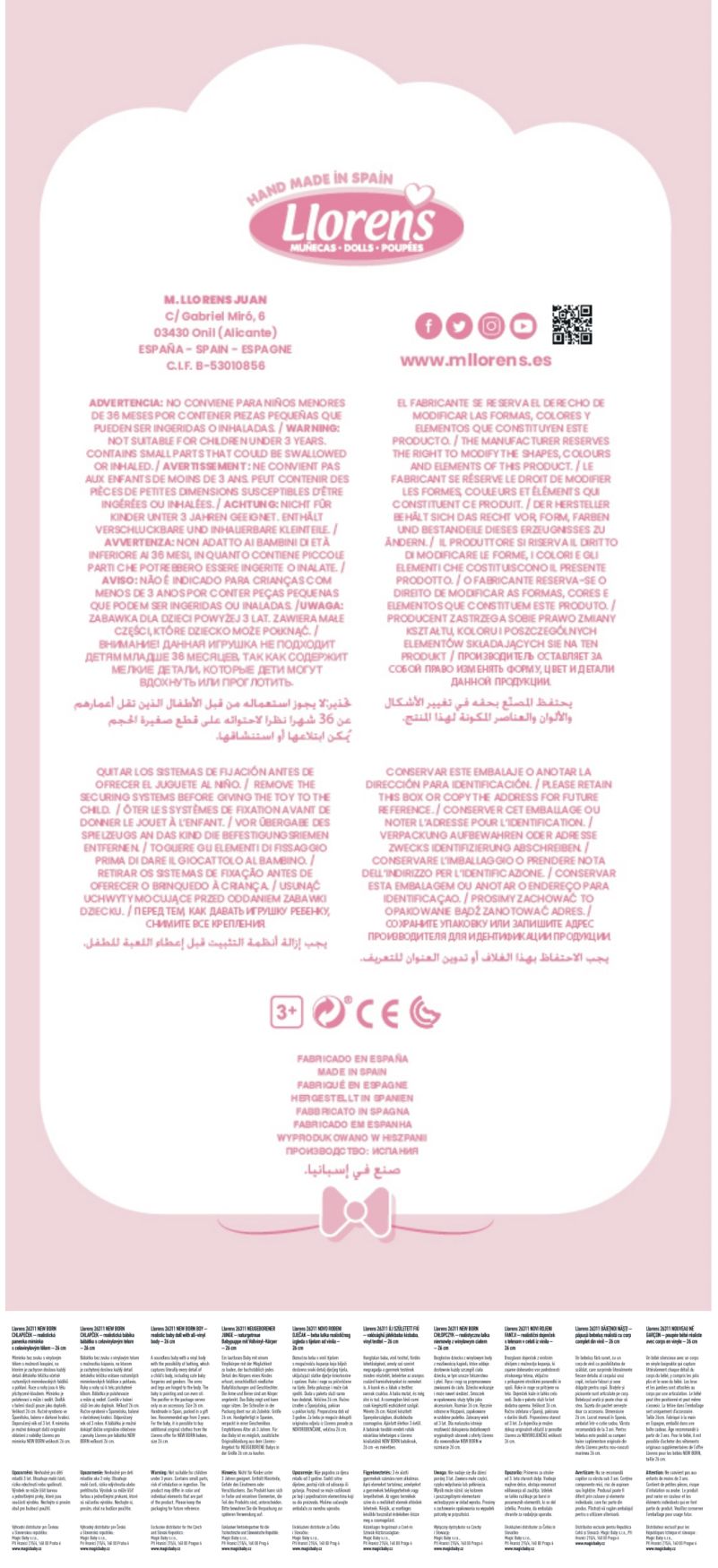 Miminko bez zvuku s vinylovým tělem s možností koupání, na kterém je zachycen doslova každý detail dětského tělíčka včetně roztomilých miminkovských faldíků a pohlaví. Ruce a nohy jsou k tělu přichycené kloubem. Miminko je polohovací a může i sedět. Dudlík v balení slouží pouze jako doplněk. Velikost 26 cm. Ručně vyrobeno ve Španělsku, baleno v dárkové krabici. Doporučený věk od 3 let.