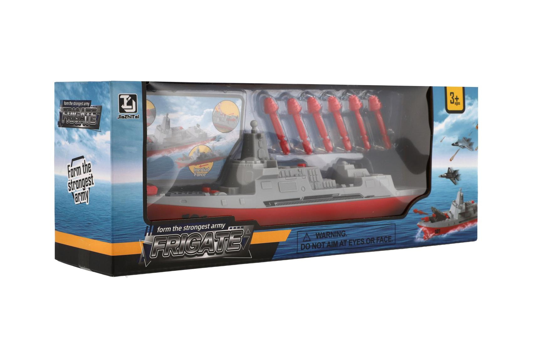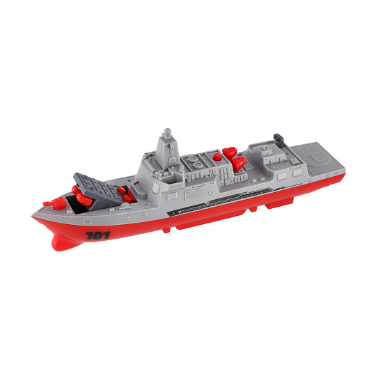 Akční vojenský křižník, který přináší zábavu plnou dobrodružství. Model je vybaven setrvačníkovým pohonem pro plynulý pohyb a střeleckou funkcí, díky které si děti užijí dynamickou hru na moři. Detailní provedení a doplňky podporují kreativní hru a umožňují dětem vytvářet vlastní námořní mise.