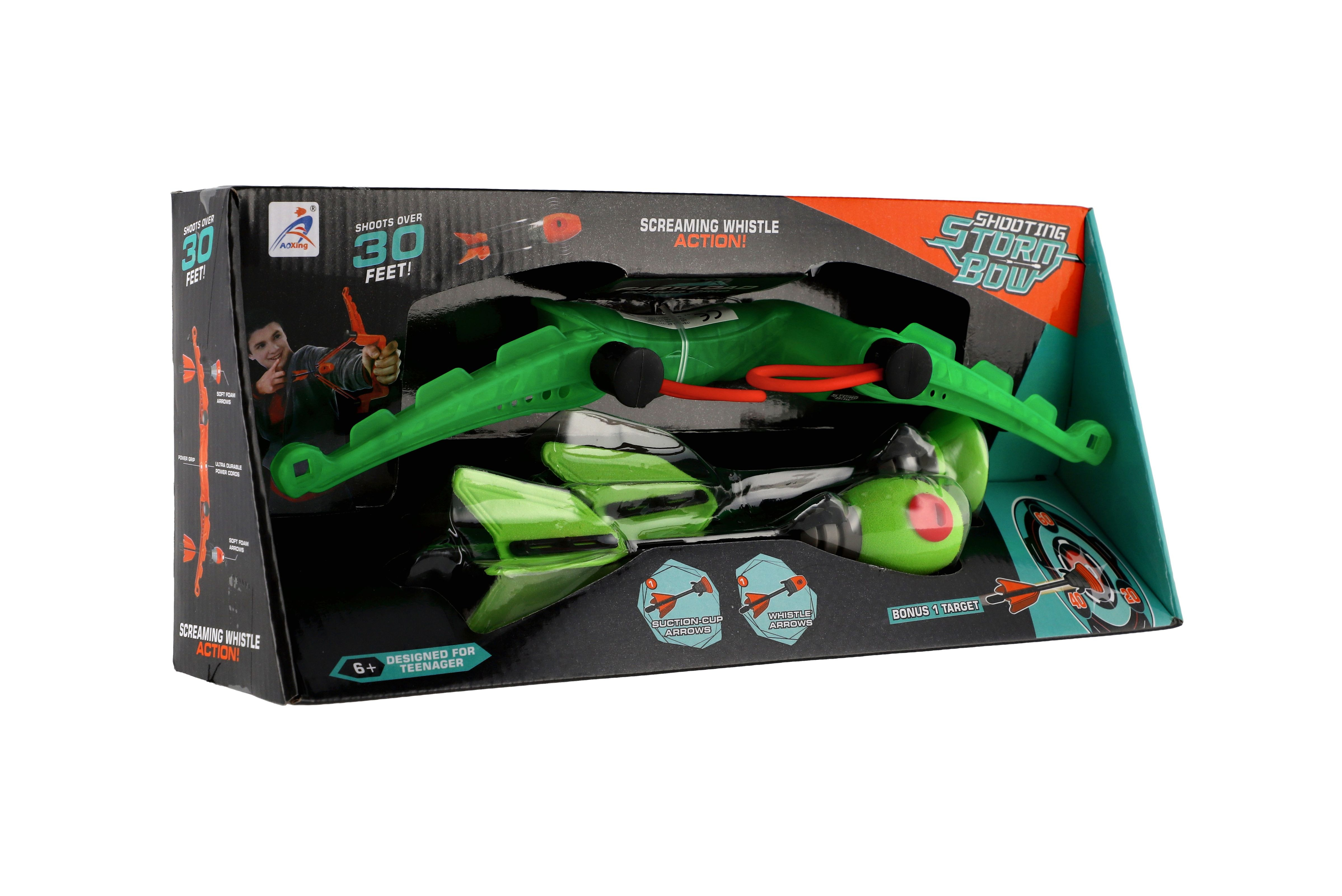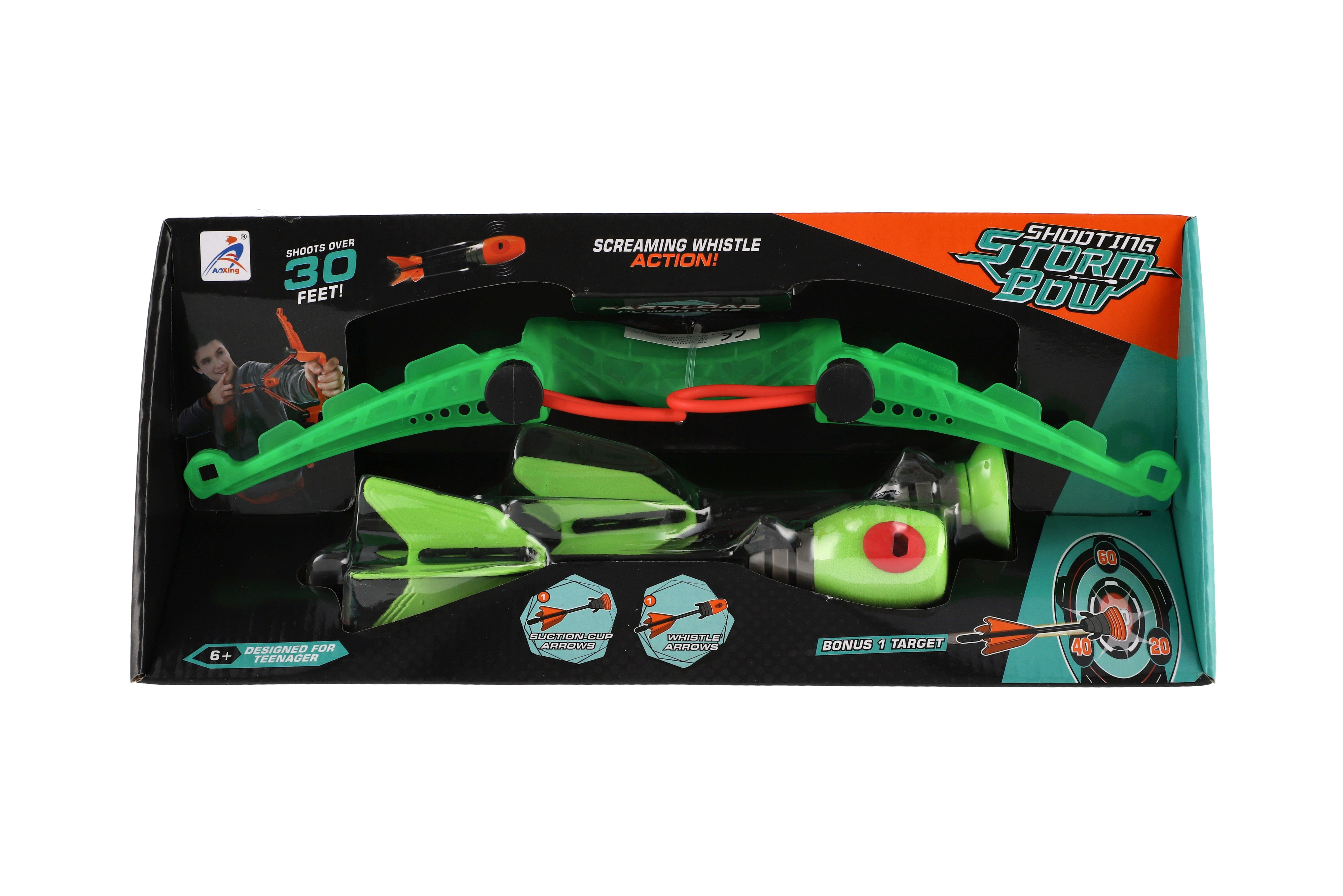 Zaměřte a vystřelte šíp na terč. Šípy mají na svém konci přísavky. Tyto přísavky slouží k přichycení šípu na cílovou plochu nebo jiný hladký povrch. Balení obsahuje luk, 2 šípy a terč. Rozměr luku: 27 cm Vhodné od 3 let