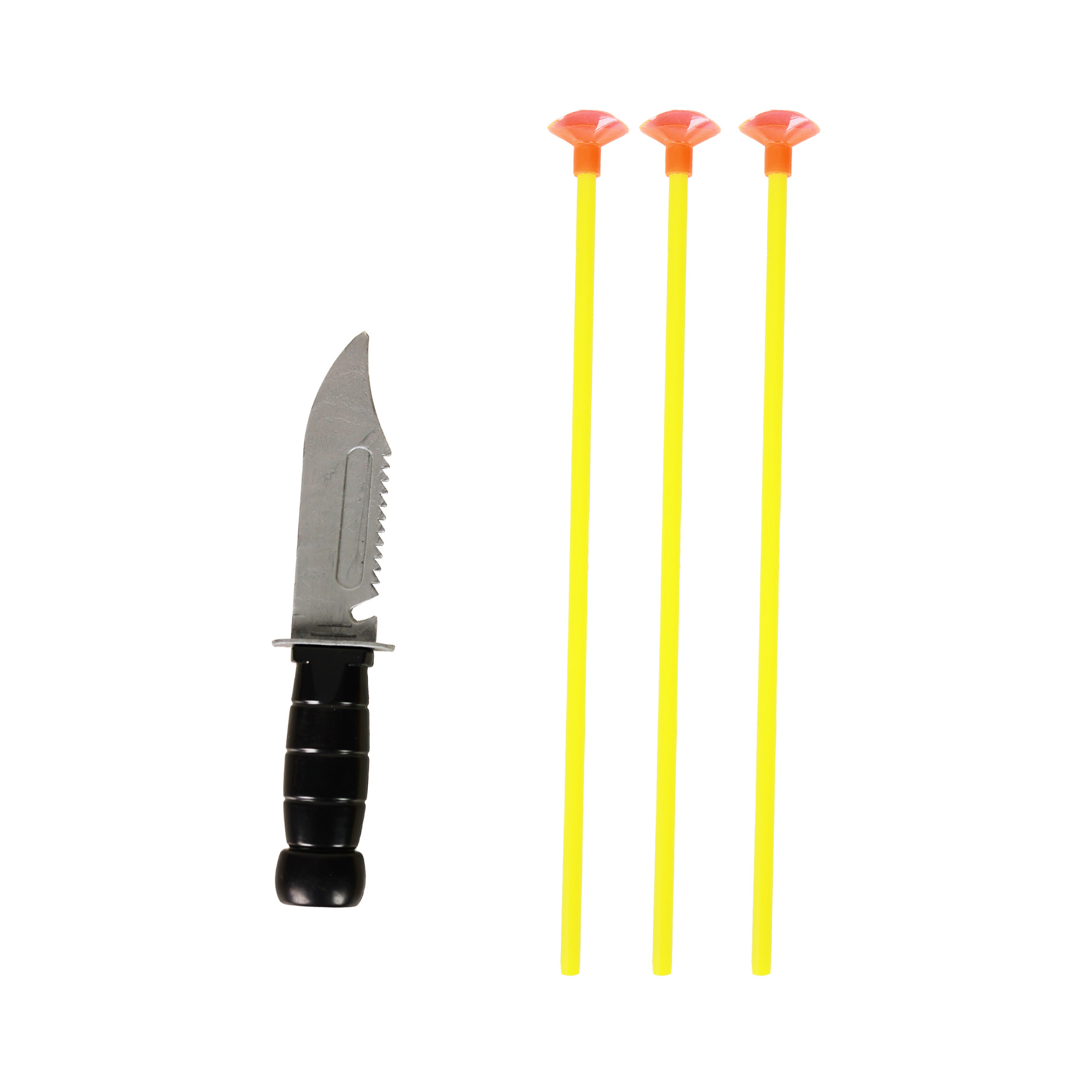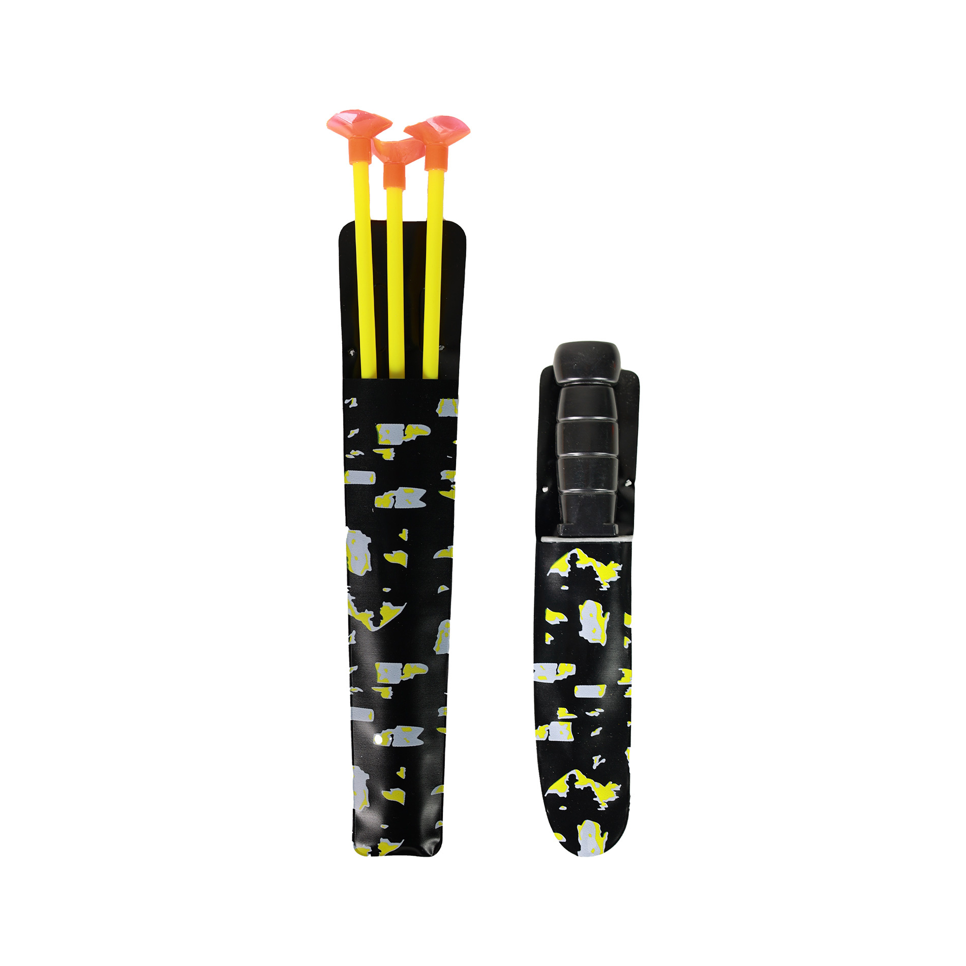 Natáhni, zamiř a střílej! Tato lovecká sada obsahuje úchvatný luk, 3 barevné šípy s přísavkami v obalu a nůž. Vše je vyrobeno z plastu. Tětivu je nutné zkrátit tak, aby byla dostatečně napnutá.